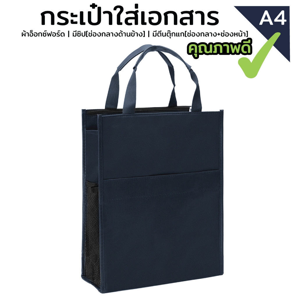 กระเป๋าเอกสาร ใส่กระดาษA4 ผ้าอ็อกซ์ฟอร์ดน้ำเงินเข้ม | มีซิป[ช่องกลางด้านข้าง] | มีตีนตุ๊กแก[ช่องกลาง+ช่องหน้า] พร้อมส่ง!