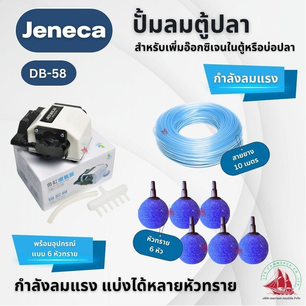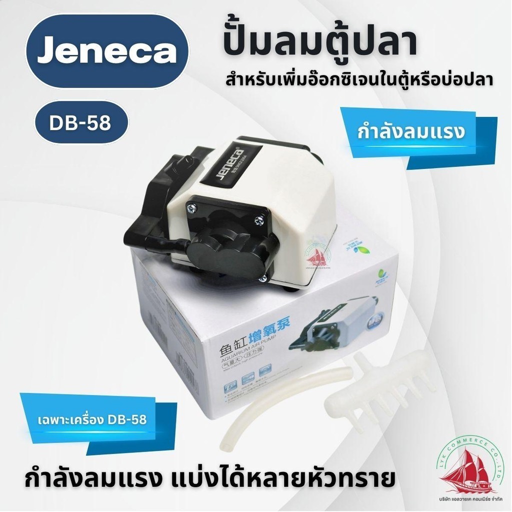 Jeneca ปั้มลมตู้ปลาหรือบ่อปลา กำลมแรง สามารถแบ่งได้หลายหัวทราย กำลังไฟ 25w ลมออก 55 ลิตรต่อนาที