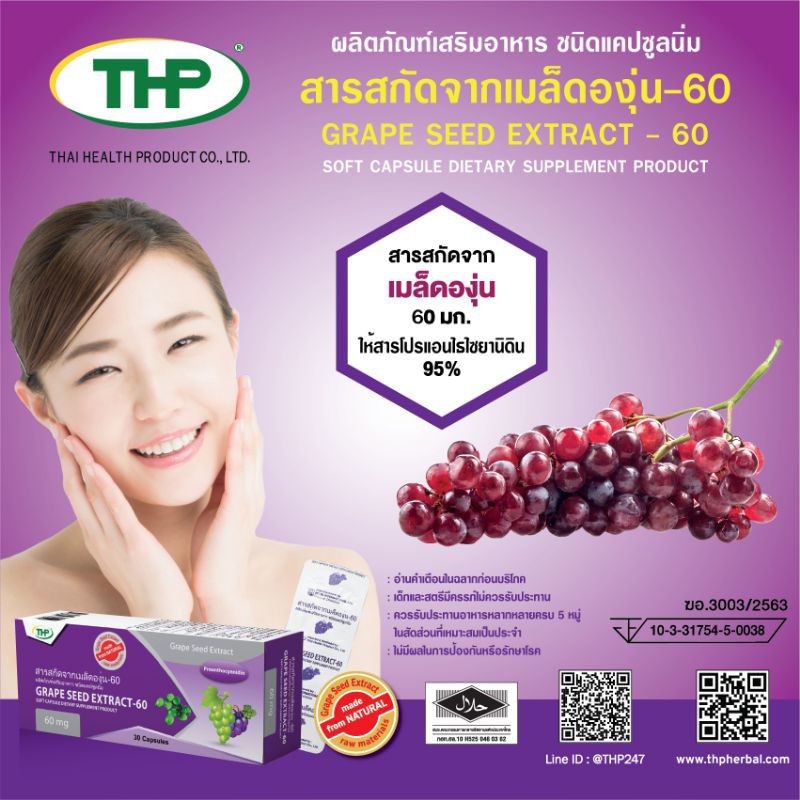 สารสกัดจากเมล็ดองุ่น-60 มก. l Grape seed extract-60 mg l THP Brand