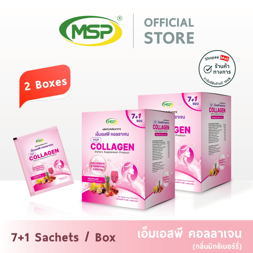 เอ็มเอสพี คอลลาเจน กลิ่นมิกซ์เบอร์รี่ l MSP Collagen Mixberry flavor l 8 ซอง l MSP Brand l New !!