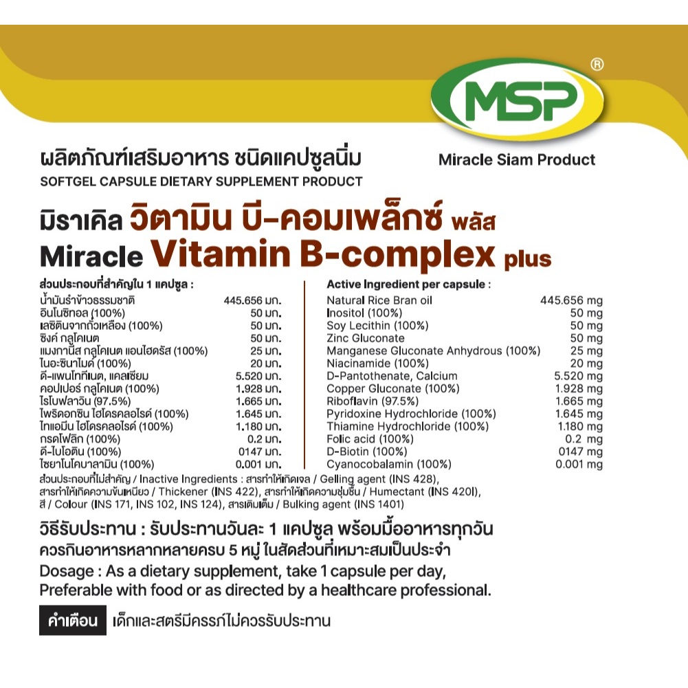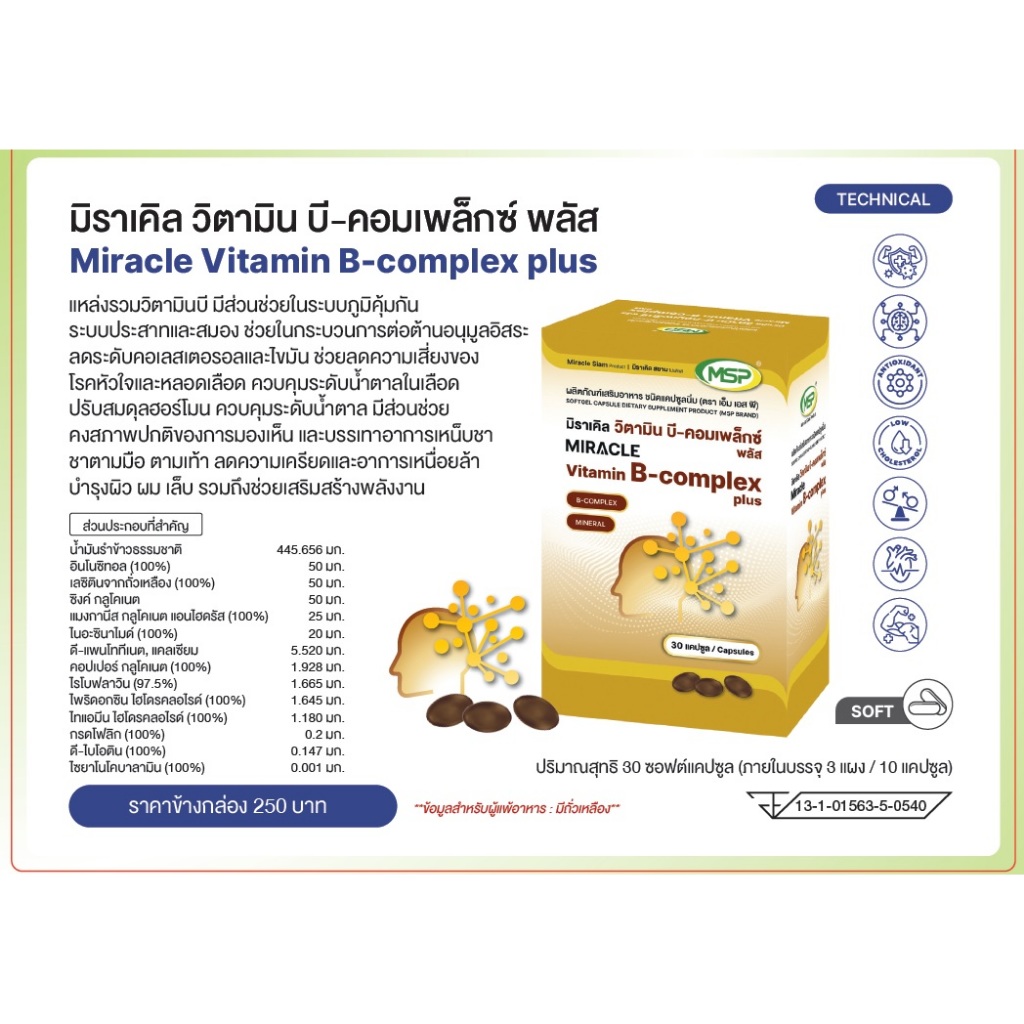 [MSP Official] มิราเคิล วิตามินบีรวม พลัส l Miracle B-Complex plus l "การันตีของแท้ ส่งตรงจากบริษัท"