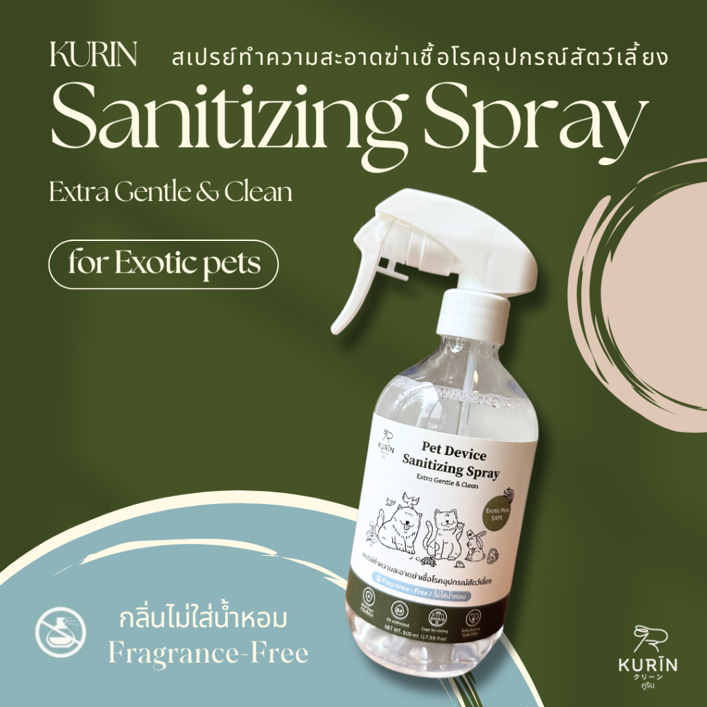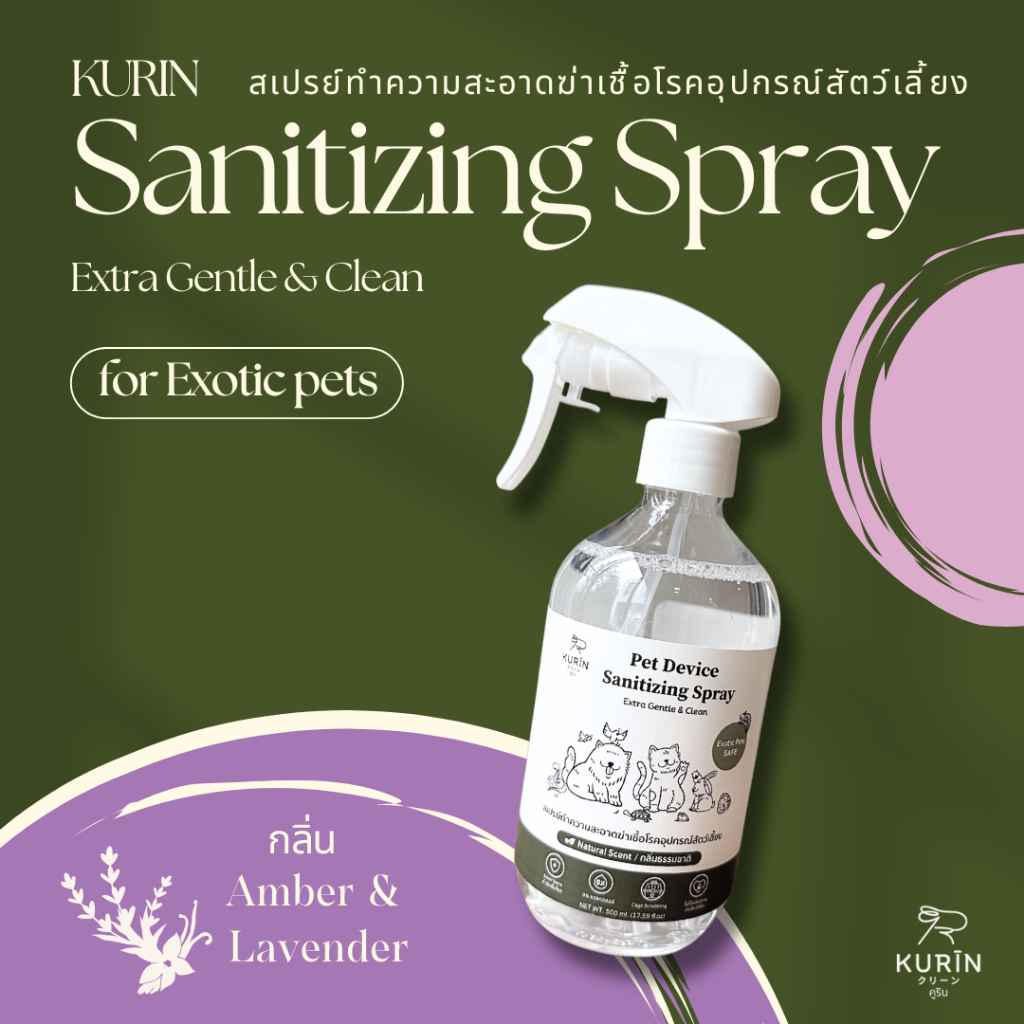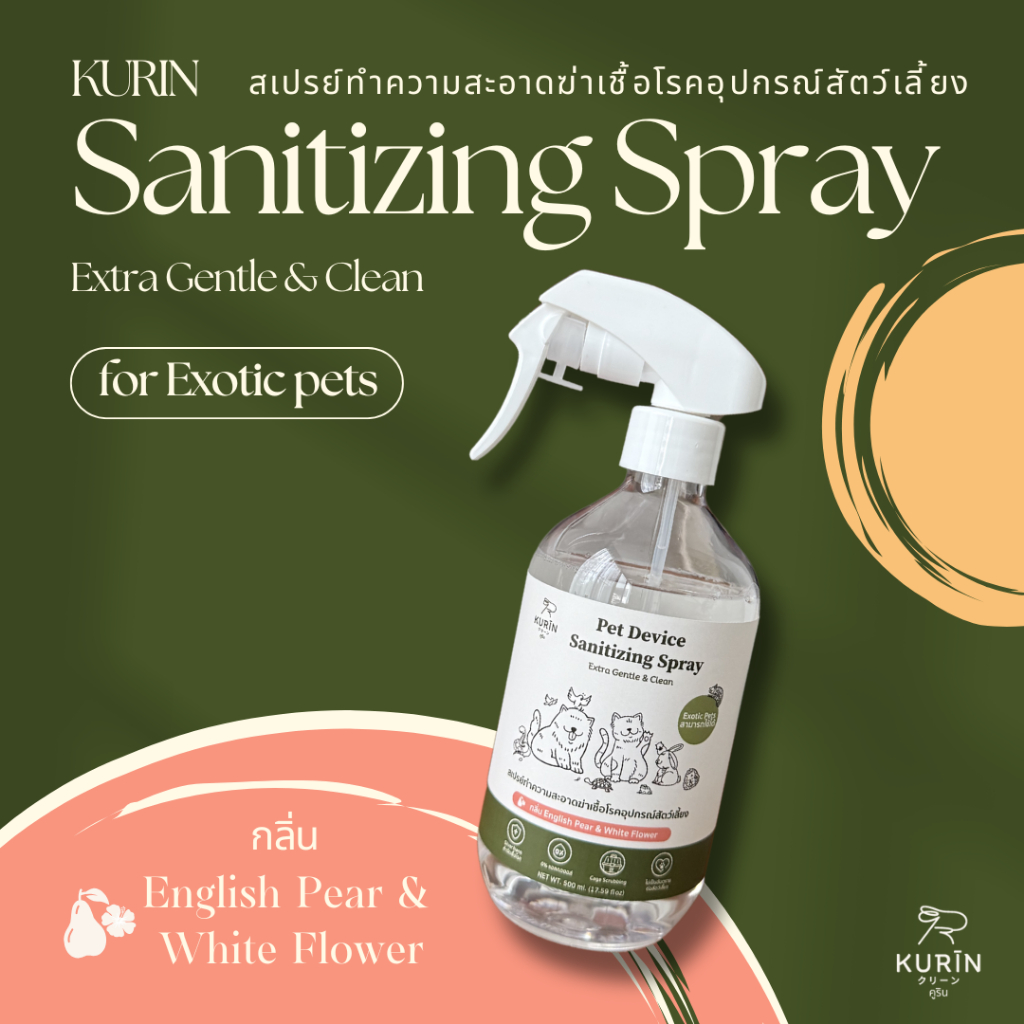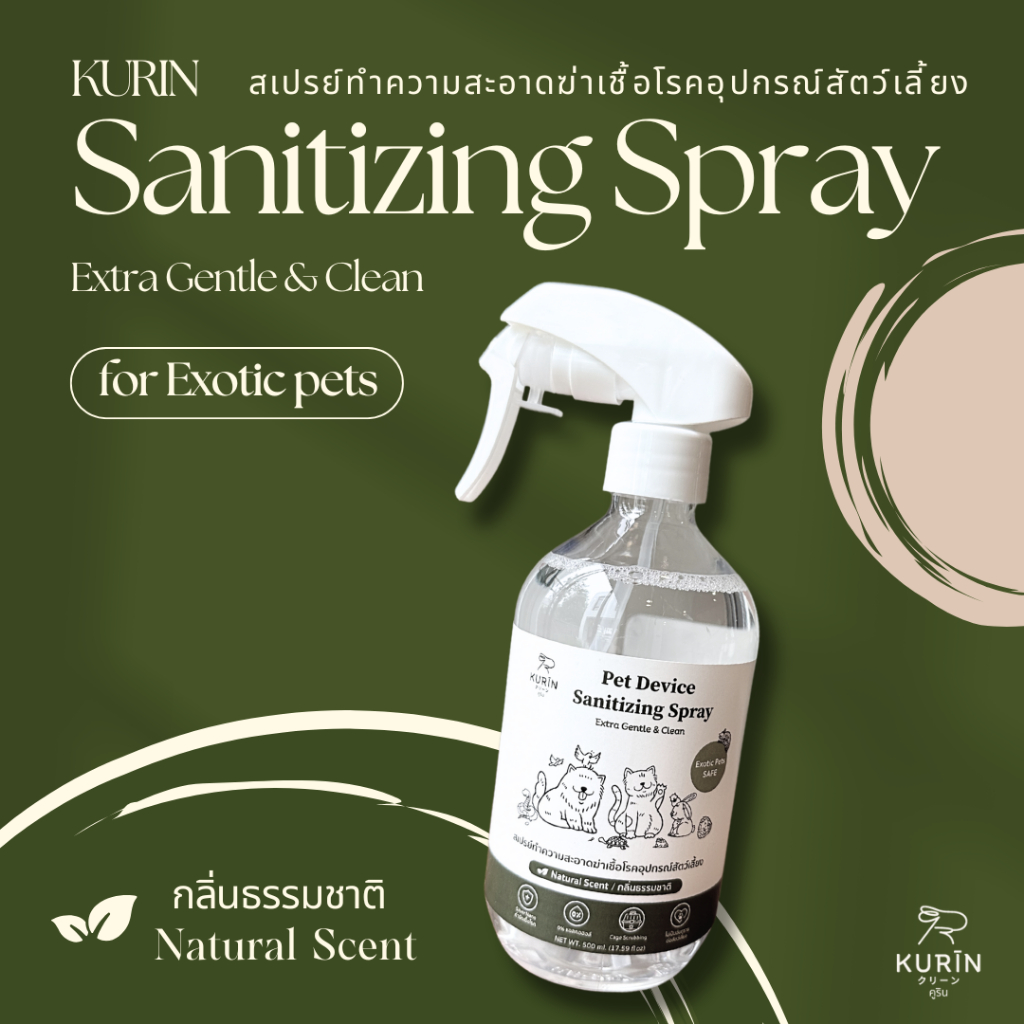 Kurin สเปรย์ทำความสะอาดฆ่าเชื้อโรคอุปกรณ์สัตว์เลี้ยง (Exotic petsใช้ได้) ขนาด 500 ml