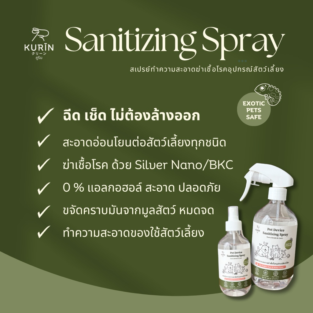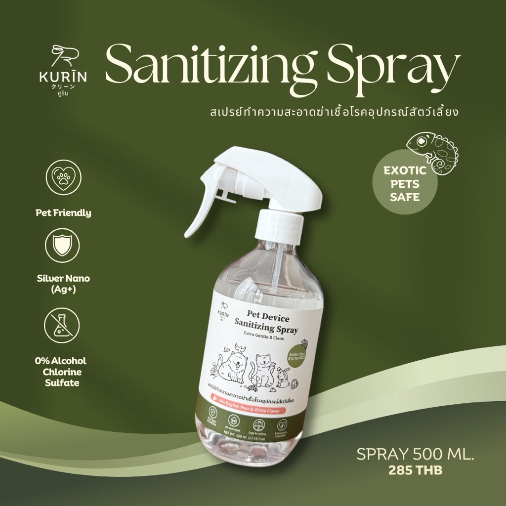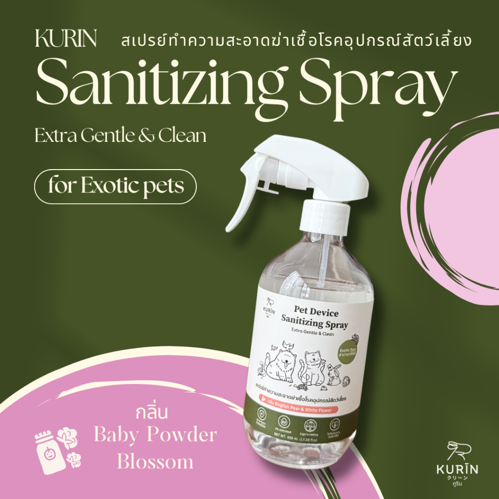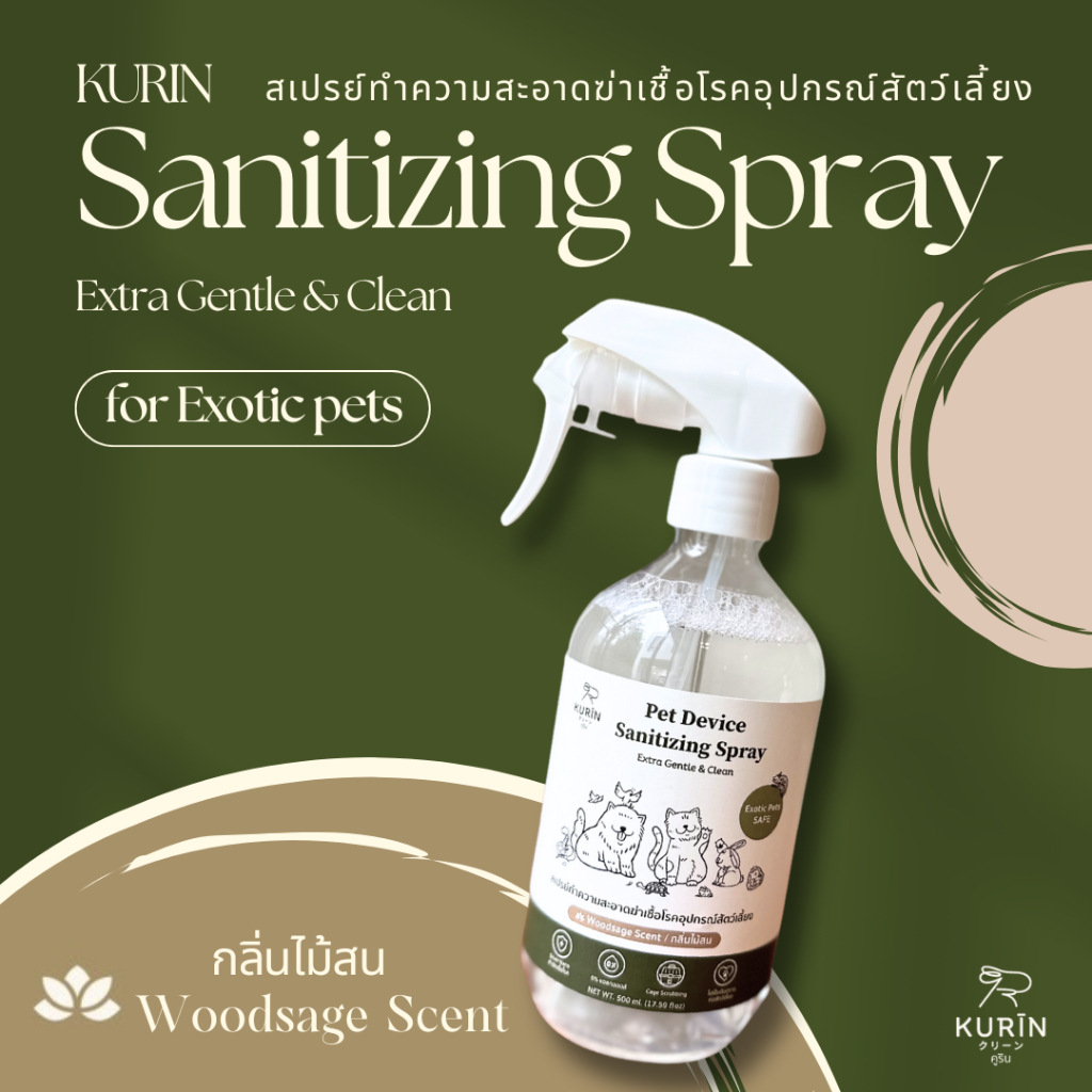 Kurin สเปรย์ทำความสะอาดฆ่าเชื้อโรคอุปกรณ์สัตว์เลี้ยง (Exotic petsใช้ได้) ขนาด 500 ml