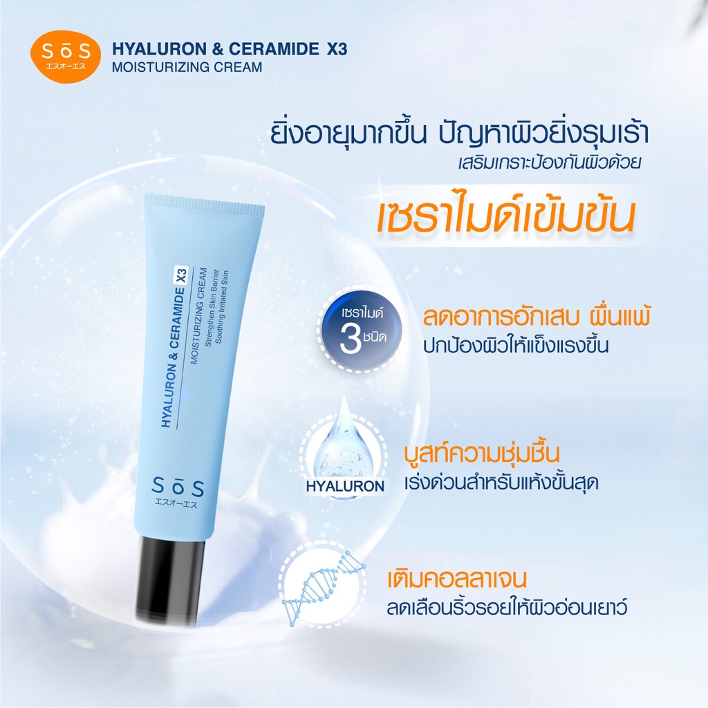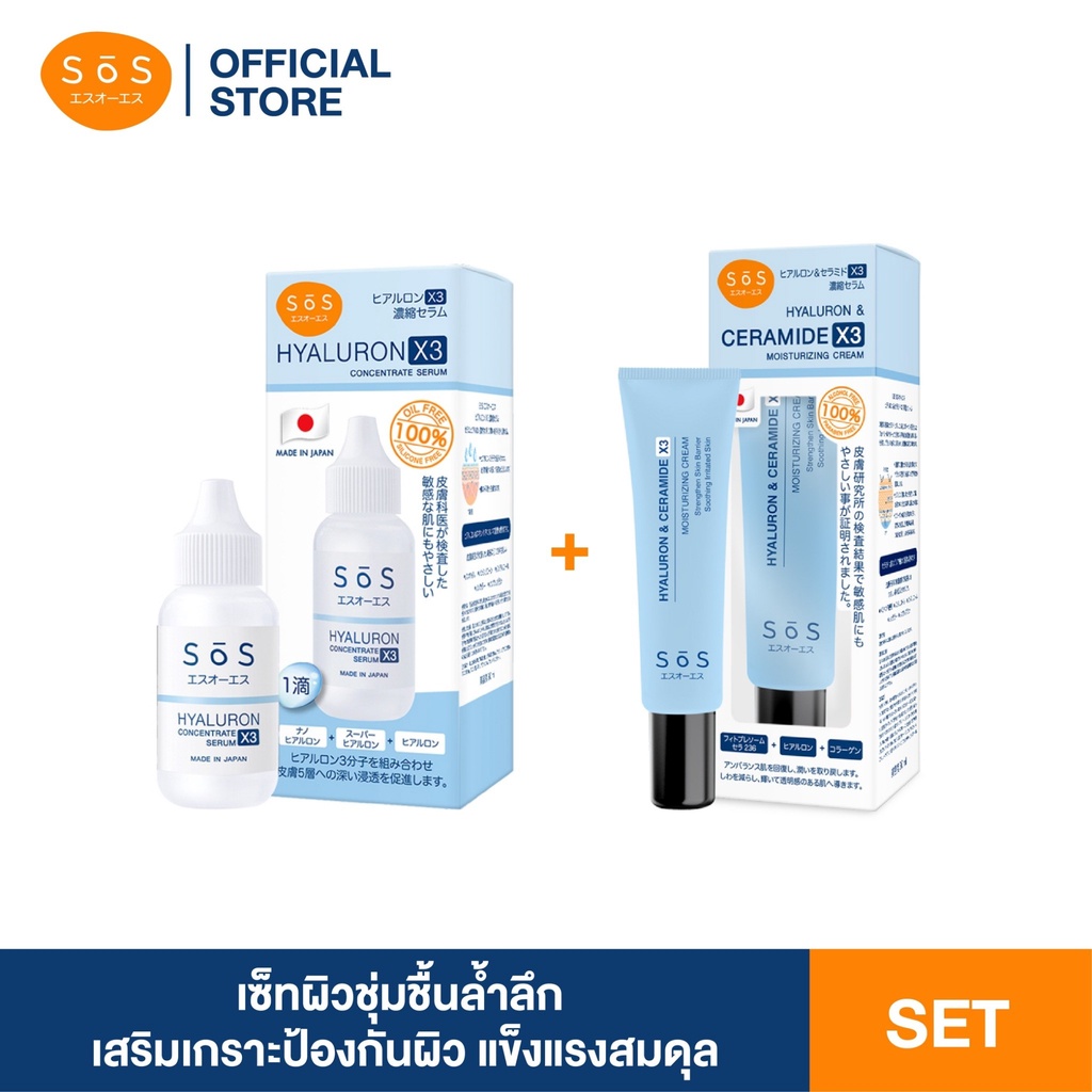 [SET] SOS Hyaluron X3 concentrate serum 30 ml + Hyaluron&CeramideX3 Moisturizing Cream 30ml เซ็ทผิวชุมชื้นล้ำลึก
