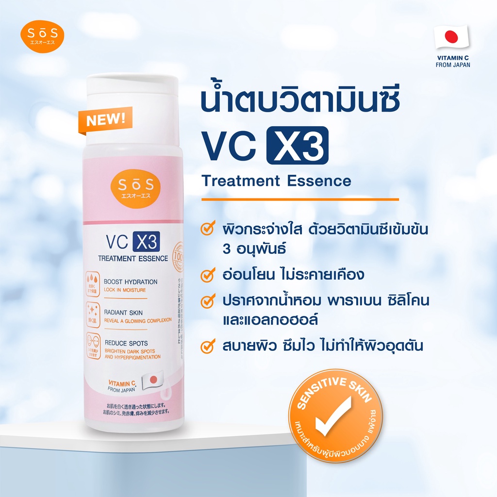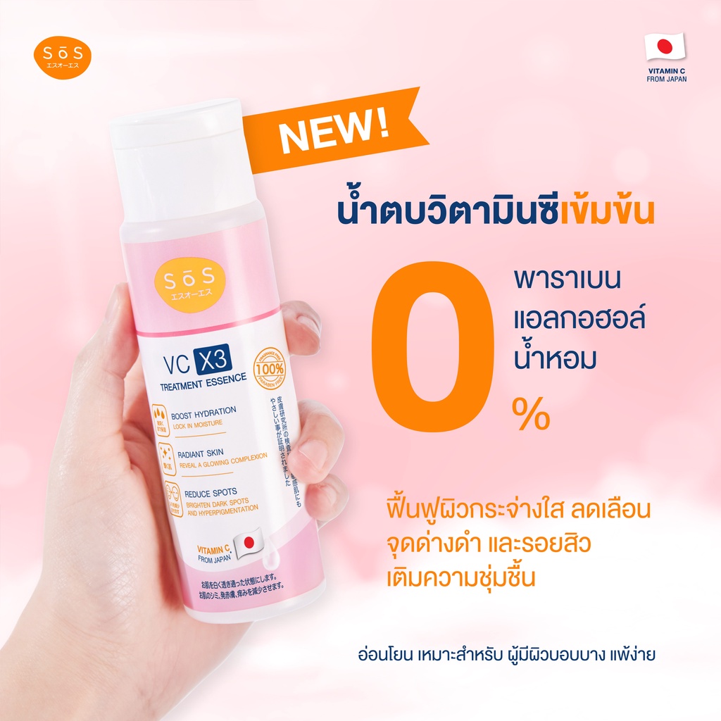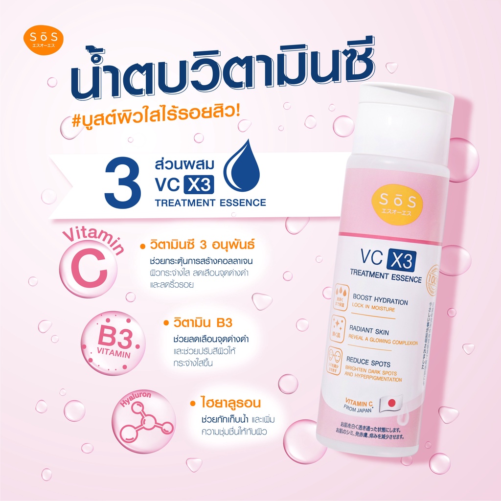 SOS VC X3 Treatment Essence 170 ml เอะสึ โอ เอะสึ น้ำตบวีซี เอ็กซ์3 ทรีทเมนท์ เอสเซนส์ ช่วยลดสิวลดรอยดำ (10SO00025)