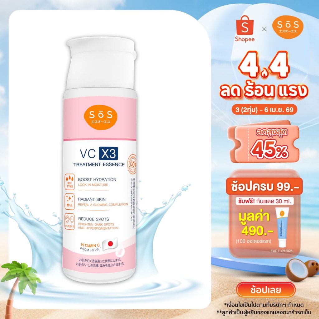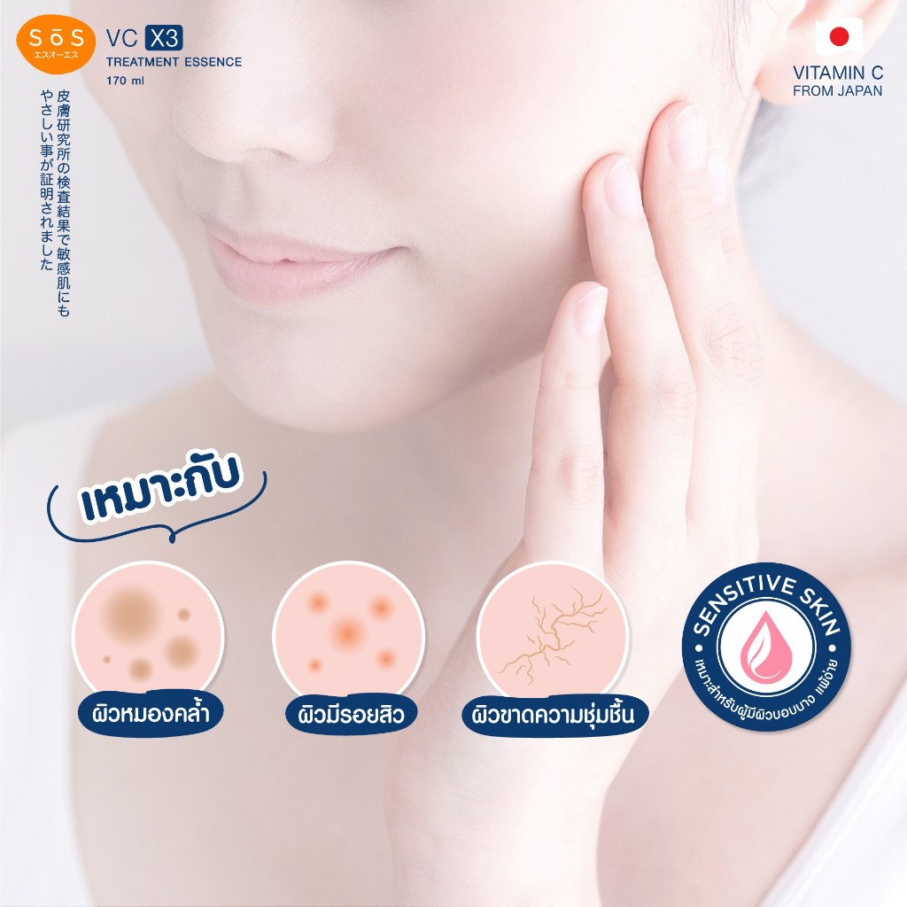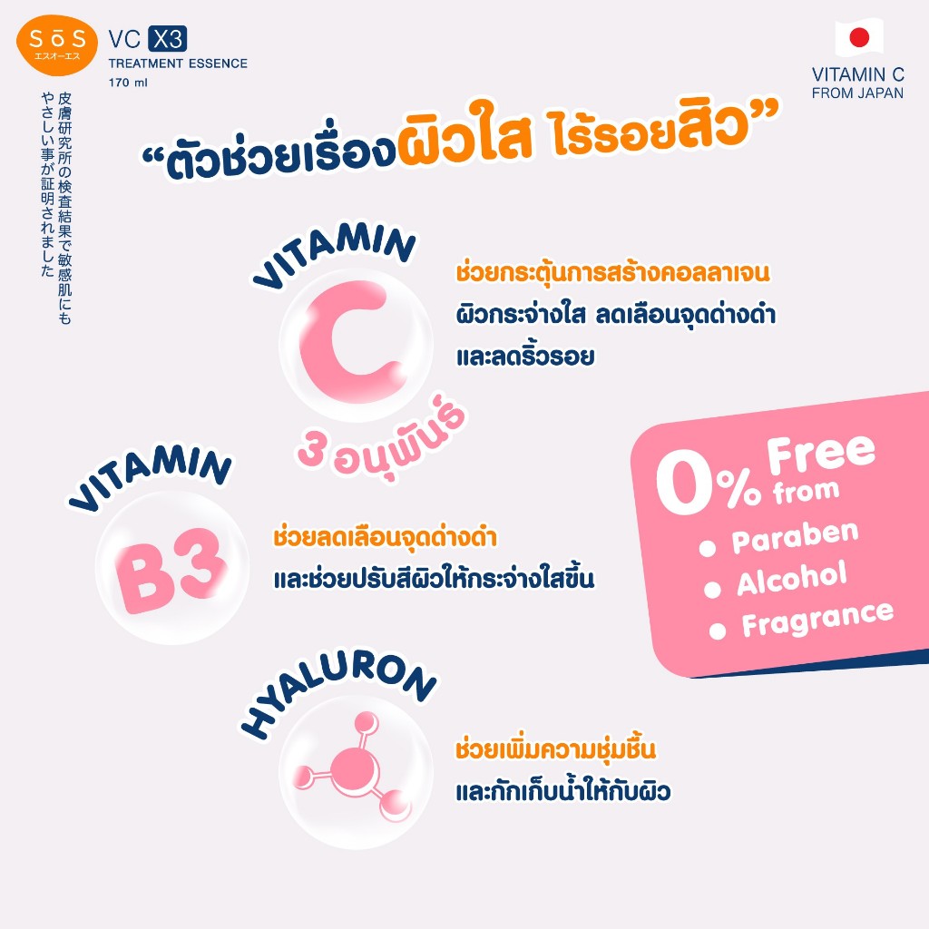 SOS VC X3 Treatment Essence 170 ml เอะสึ โอ เอะสึ น้ำตบวีซี เอ็กซ์3 ทรีทเมนท์ เอสเซนส์ ช่วยลดสิวลดรอยดำ (10SO00025)