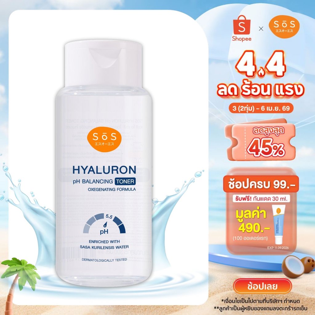 [ขายดี] SOS Hyaluron pH Balancing Toner 300ml เอะสึ โอ เอะสึ ไฮยาลูรอน พีเอช บาลานซ์ซิ่ง โทนเนอร์ 300 มล. (10SO00031)