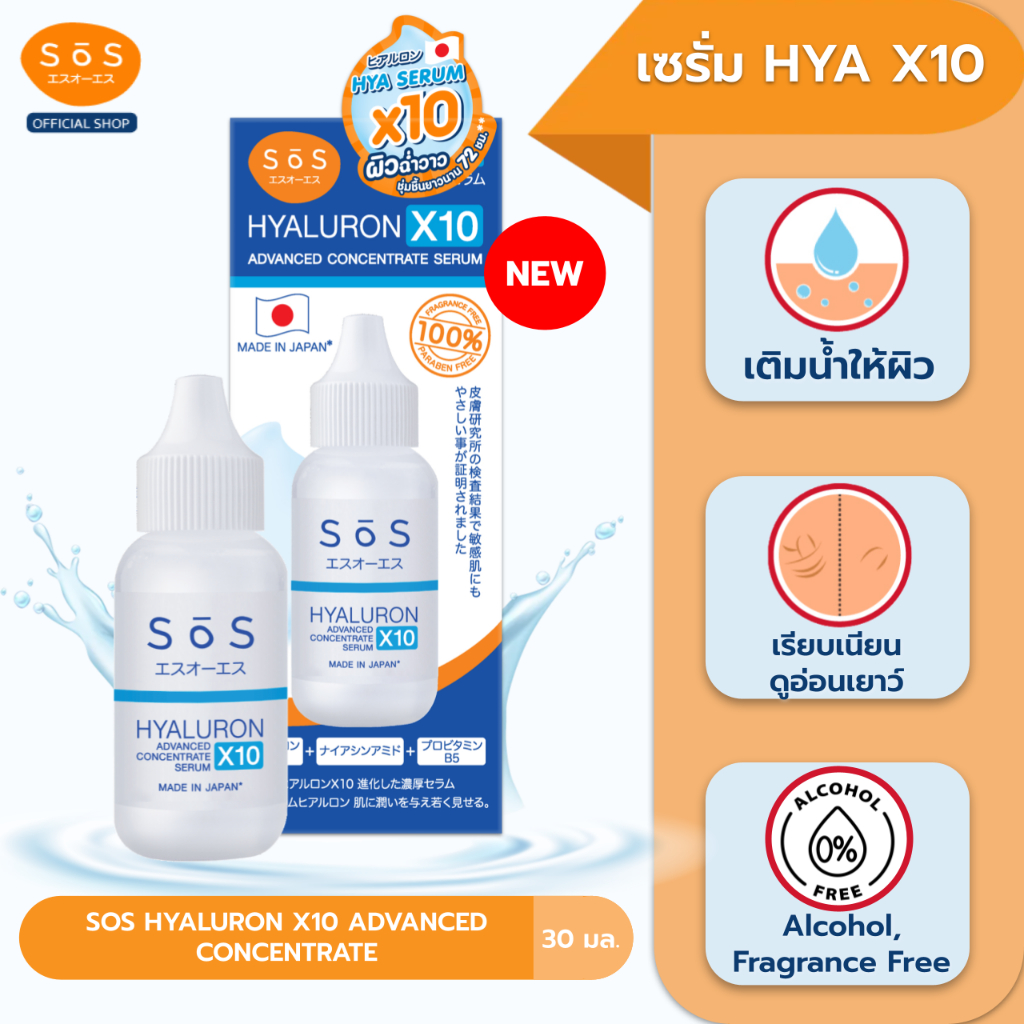 [ขายดี] SOS HYALURON X10 ADVANCED CONCENTRATE 30ml เอะสึ โอ เอะสึ เซรั่มเข้มข้น 10 โมเลกุล (10SO00093)
