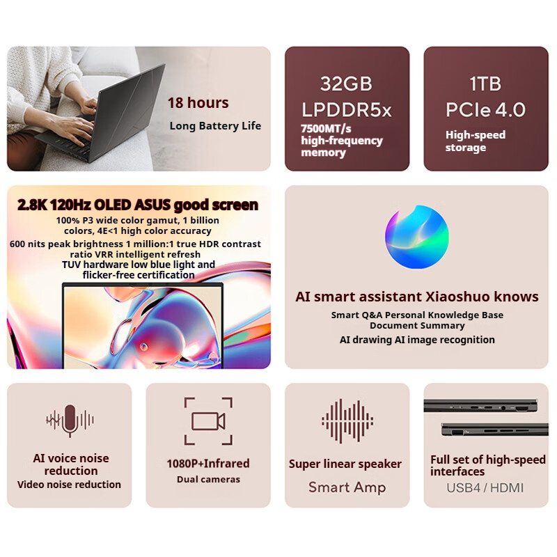2025 ASUS Zenbook 14 UM3406K Ryzen AI 7 H 350 14" 2.8K 120Hz OLED ASUS Lingyao 14 ASUS AI Laptop 华硕灵耀14 Asus Warranty