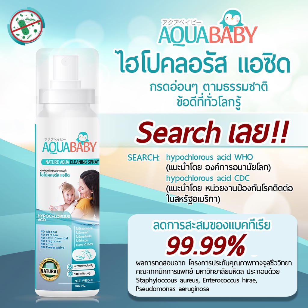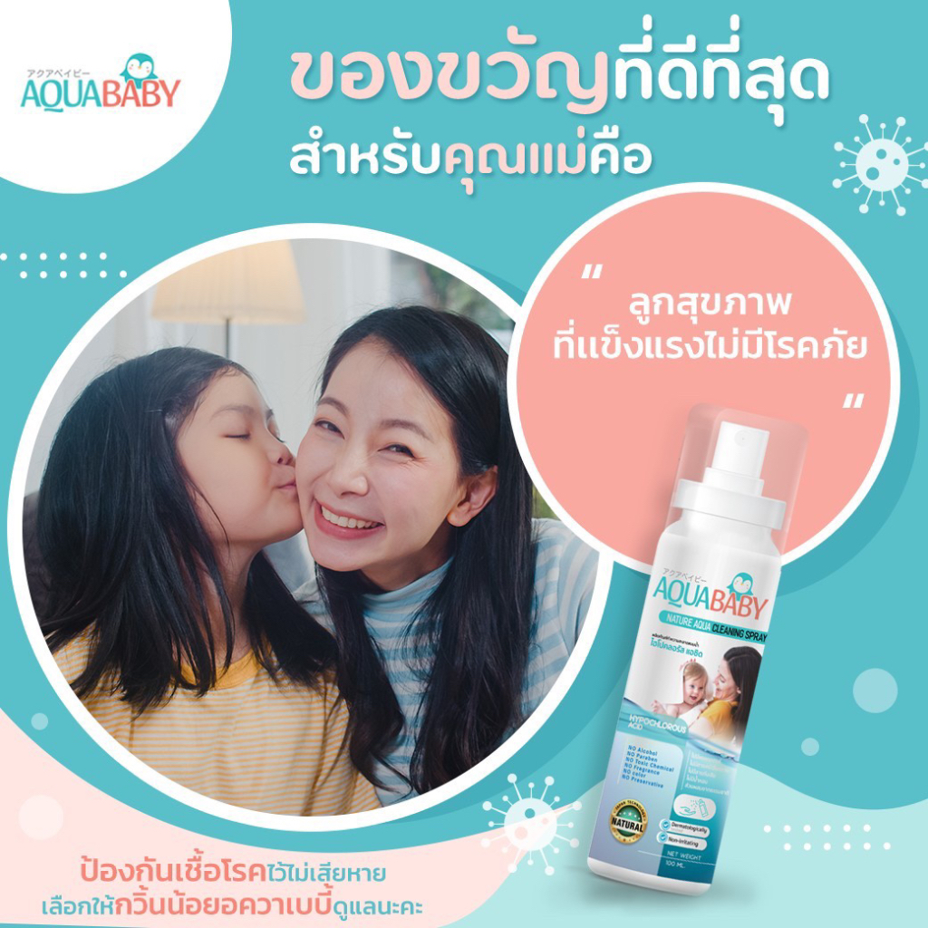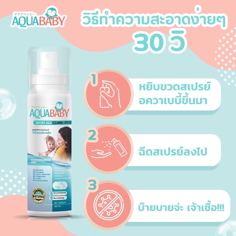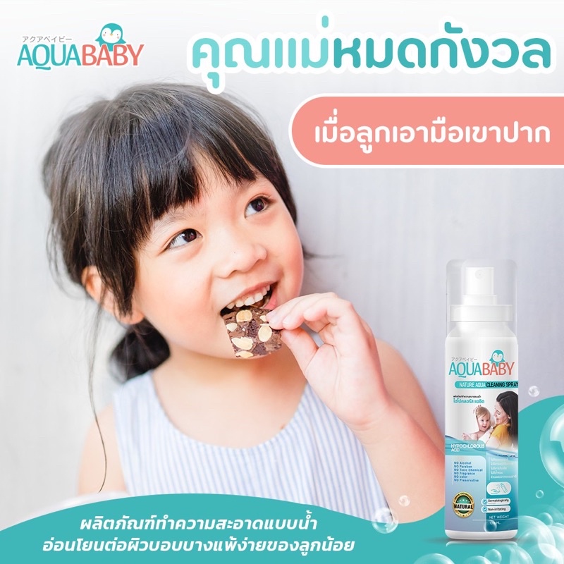 ซื้อ 1แถม 1 สเปรย์ทำความสะอาดผิวกายสำหรับเด็ก AQUABABY (100lmlแพคเกตใหม่ลายการ์ตูน)