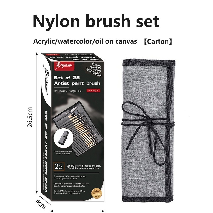 Rextt Nylon Brush ชุดแปรงไนล่อน ชุด 18/25 ชิ้น กระเป๋าผ้าใบสารพัน ม่านปากกา แปรงน้ํามัน แปรงสีน้ํา Gouache ส้ม ขาว