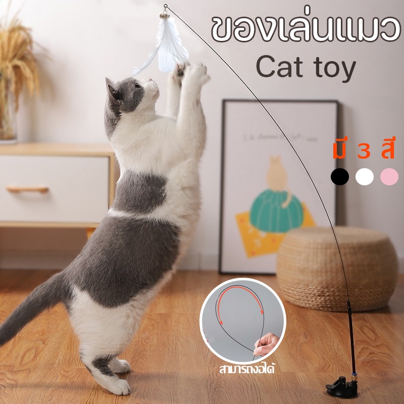 พร้อมส่ง😻ของเล่นแมว ของเล่นล่อแมว Cat toy ขนนก แบบปุ่มดูดสุญญากาศ ไม้แหย่แมว และแบบติดกระจก
