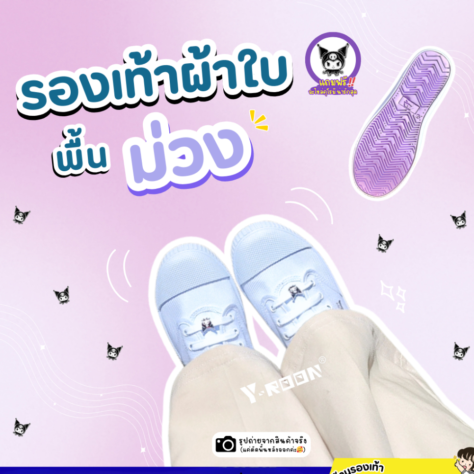 [แถมบิลเบิก ร.ร.] รองเท้าผ้าใบนักเรียน PK888 / Y999 ผ้าใบสีขาว พื้นสีชมพู / พื้นสีม่วง Sz.34 - 43