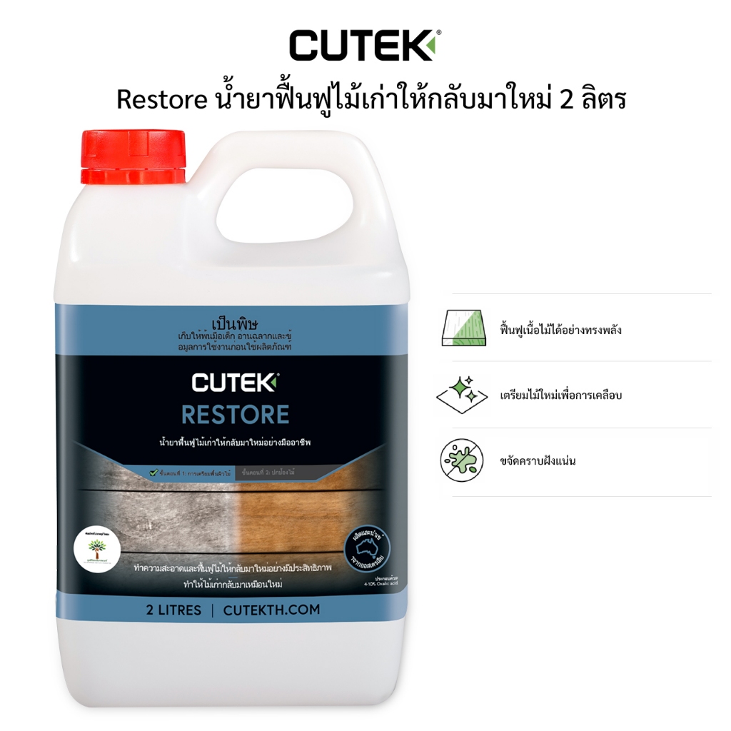 CUTEK® Restore 2ลิตร น้ำยาฟื้นฟูไม้เก่าให้กลับมาใหม่ ล้างเชื้อรา ล้างคราบปูนในไม้ ล้างไม้เทา