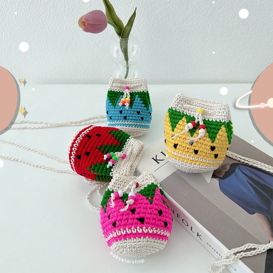BBS🔥น่ารัก พร้อมส่ง🔥 กระเป๋าถักไหมพรมสตรอเบอรี่(ไซส์จิ๋ว) ชิคๆ🍓💕