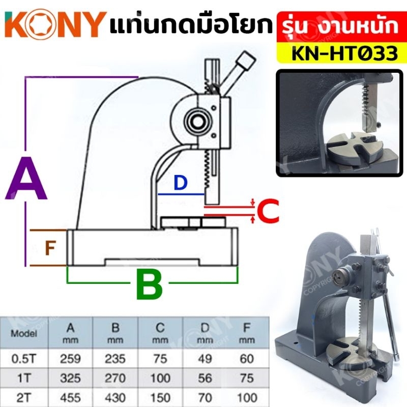 KONY แท่นกดมือโยก 0.5TON รุ่นงานหนัก แท่นกดบล็อก เครื่องเจาะแบบตั้งโต๊ะแบบธรรมดา KN-HT033ใช้กดแท่งเหล็กที่แกะสลักแล้ว
