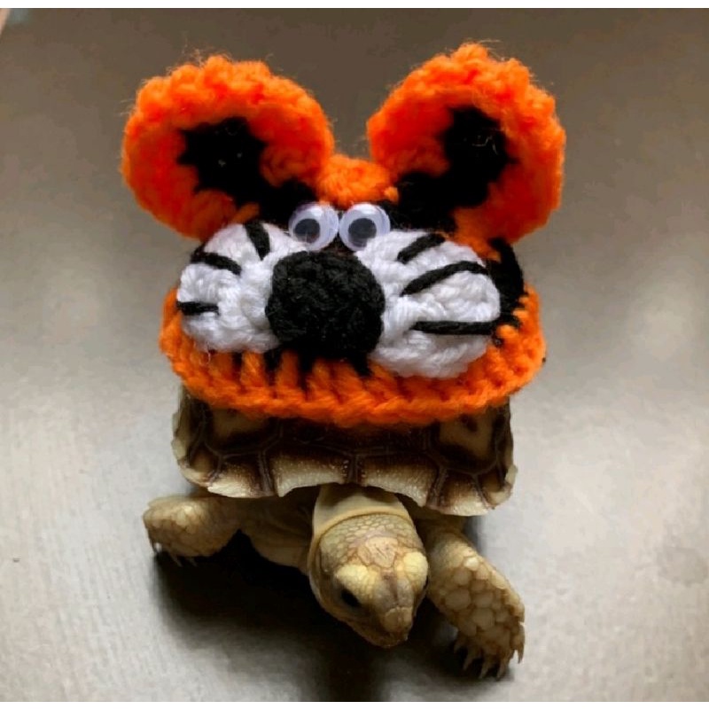 Temsuk : ชุดเต่า ชุดเต่าบก ชุดเต่าซูคาต้า ลายเสือ (Tiger)🐯 สินค้า Handmade ถักจากไหมพรม 4ply สายรัดเป็นยางยืด