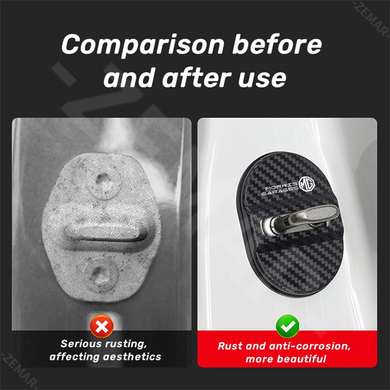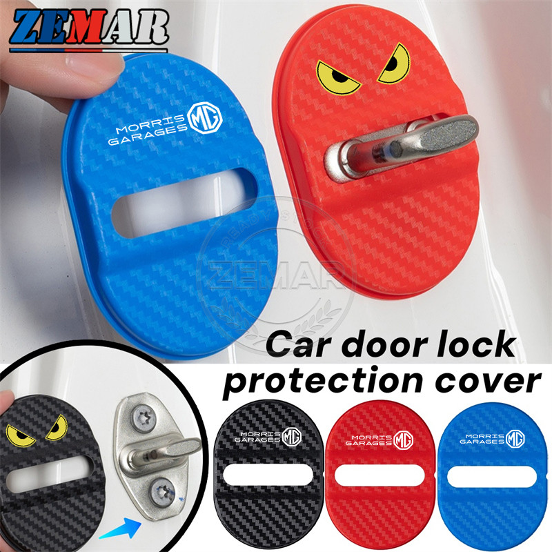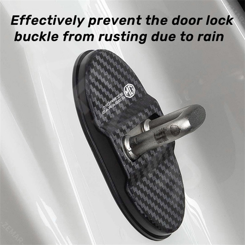 4 ชิ้น MG ฝาครอบป้องกันล็อคประตูรถยนต์ ฝาล็อคประตูคาร์บอนไฟเบอร์ ล็อคประตูรถหัวเข็มขัดโช้คอัพอุปกรณ์เสริมบัฟเฟอร์ MG HS ZS EP MG5 MG3 MG4 EV 4 5 6 GM Mulan VS HEV Extender