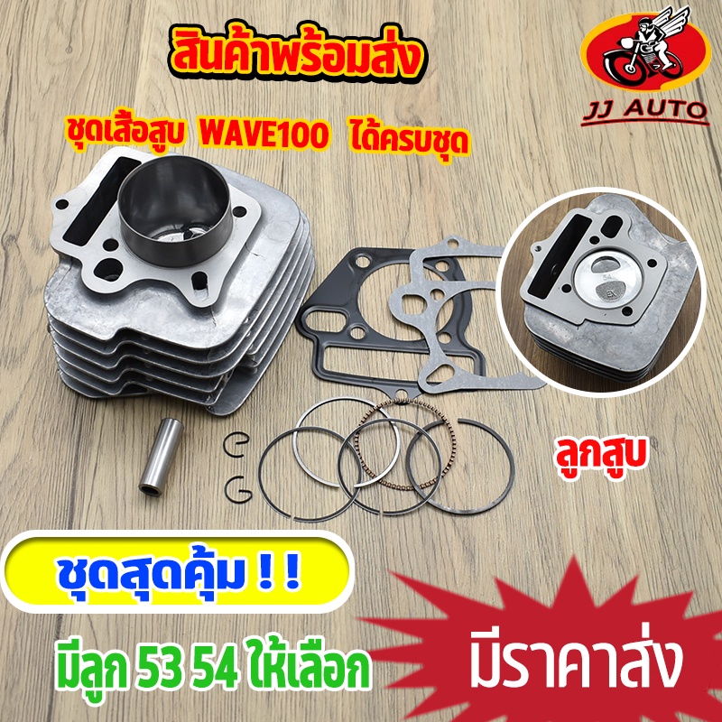 เสื้อสูบ wave100 เก่า wave100s เวฟ100 ยูบ็อก ชุดเสื้อลูกสูบ 50/53/54/56 เเบบเเต่งมีหลายเบอร์ให้เลือก