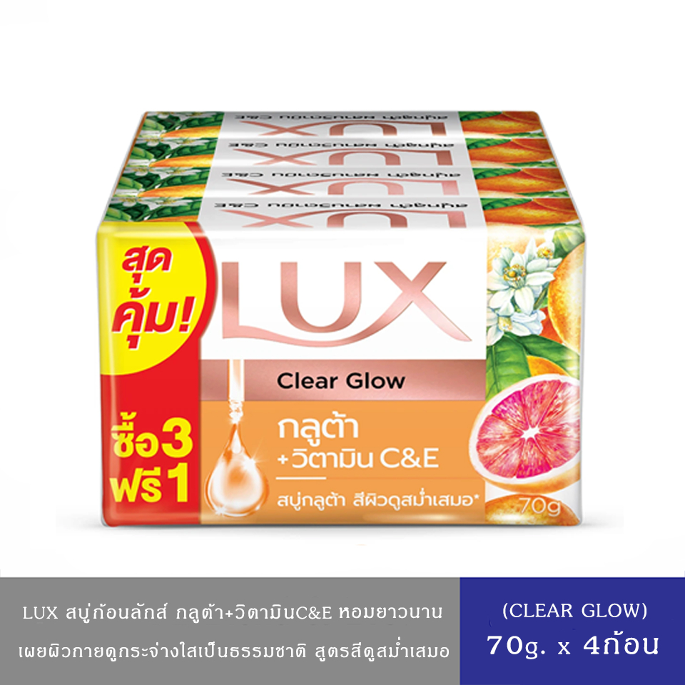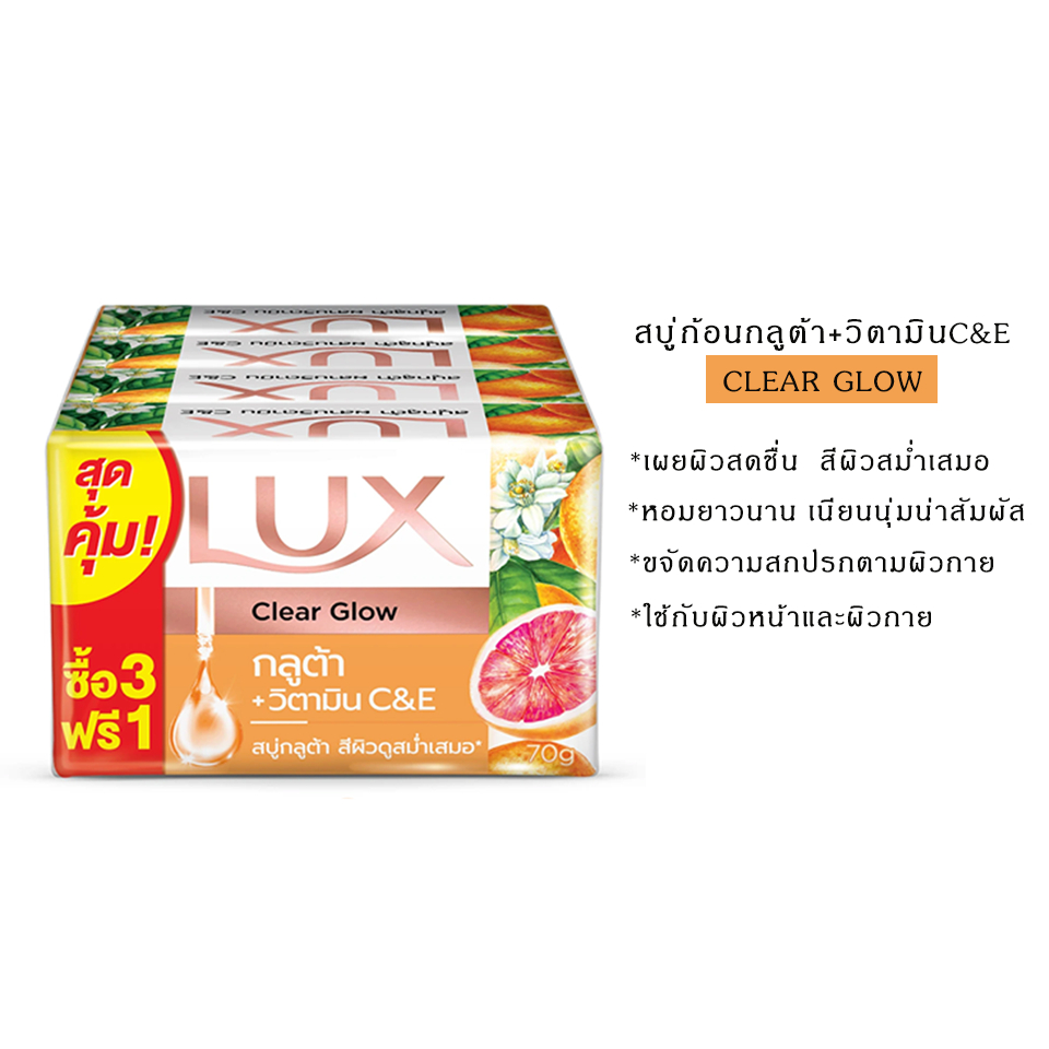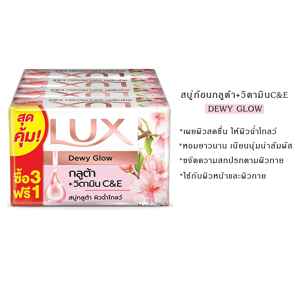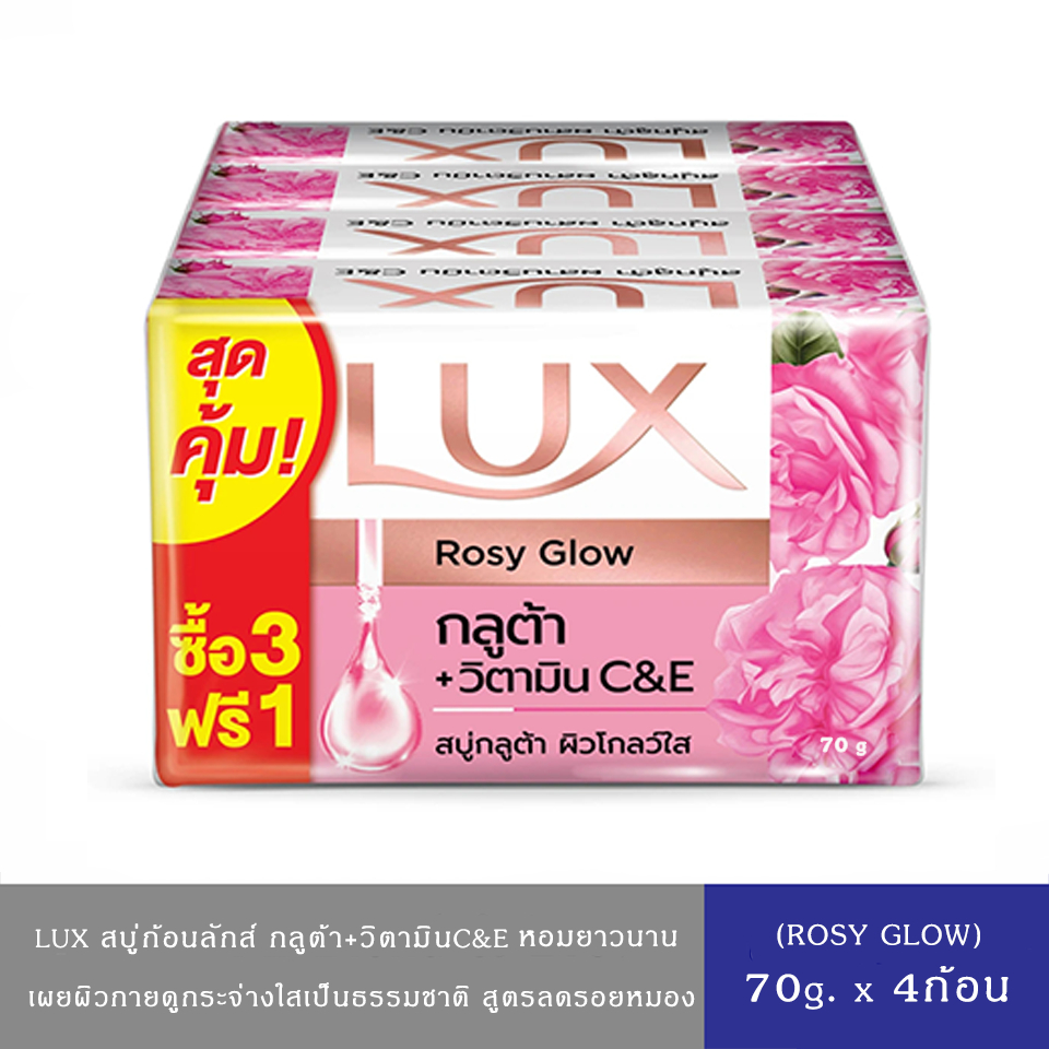 (มีให้เลือก 4 สูตร)LUX ลักส์ สบู่อาบน้ำ กลูต้า+วิตามินC&E 70ก.*แพ็ค 4ก้อน ลักส์ สบู่กลูต้าวิตามิน ไบร์ทโกลว์ ทับทิม 70ก.