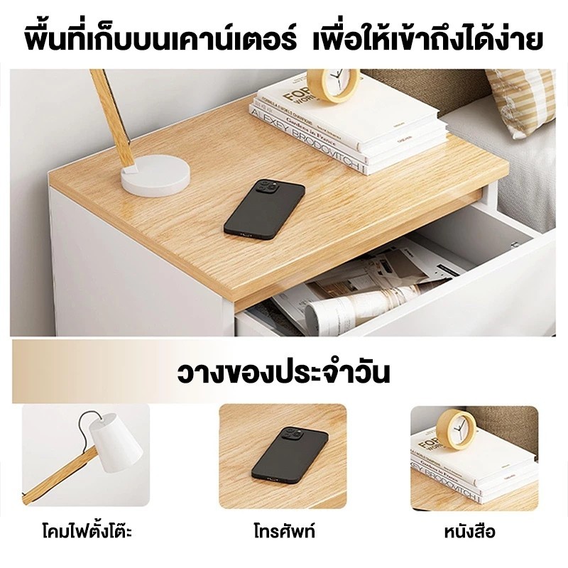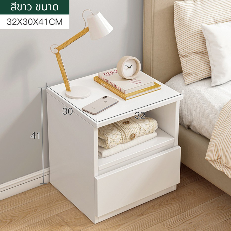 ตู้ข้างเตียง ลิ้นชักหัวเตียง พร้อมชั้นวางลิ้นชักโต๊ะวางข้างเตียง ไม้เนื้อแข็ง สไตล์นอร์ดิก ตู้ข้างเตียงไม้ โต๊ะข้างเตียง