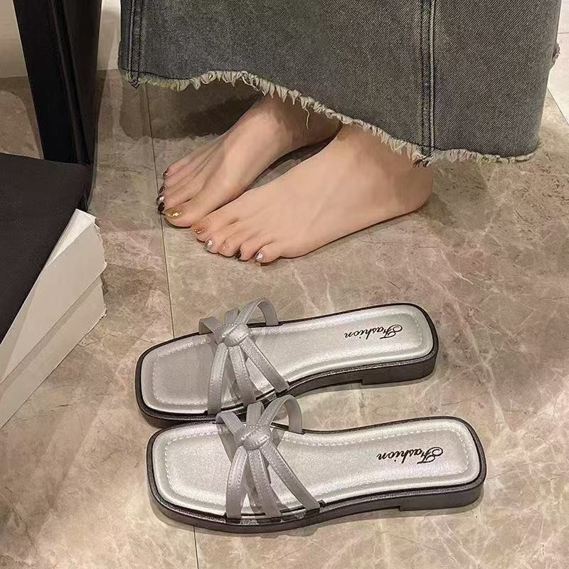 🍓EnJoy🍓พร้อมส่ง (LT-3637) รองเท้าแตะส้นแบน สไตล์เกาหลี หัวเหลี่ยม เปิดนิ้วเท้า สีพื้น กันลื่น ทนทาน แฟชั่นสำหรับผู้หญิง