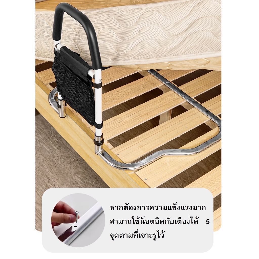 (พร้อมส่ง)ราวกั้นเตียงกันตก ช่ววพยุงตัวลุก สำหรับผู้สูงอายุผู้ป่วย วัสดุสแตนเลสหนา(แบบฐานพับ)