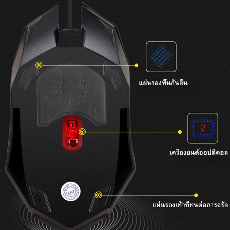 เมาส์สำหรับเล่นเกม เมาส์เกมมิ้ง เม้าส์แบบมีสาย Gaming Mouse RGBเมาส์เรืองแสงเม้าส์ เมาส์เล่นเกมเรืองแสง ปรับ DPIเสียบUSB