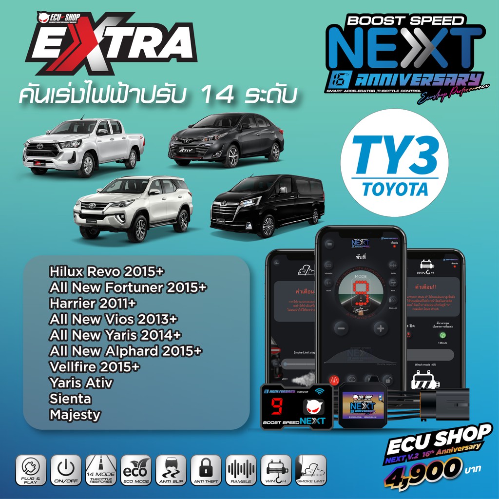 BOOST SPEED NEXT16th – TY3 (Hilux Revo 2015+/All New Fortuner 2015+/Harrier) คันเร่งไฟฟ้าปรับ 14 ระดับ ตั้งรอบเดินหอบได้