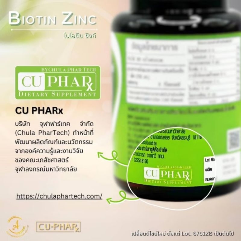 Biotin zinc จุฬา 90 เม็ด วิจัยและพัฒนาโดย คณะเภสัชฯ จุฬา
