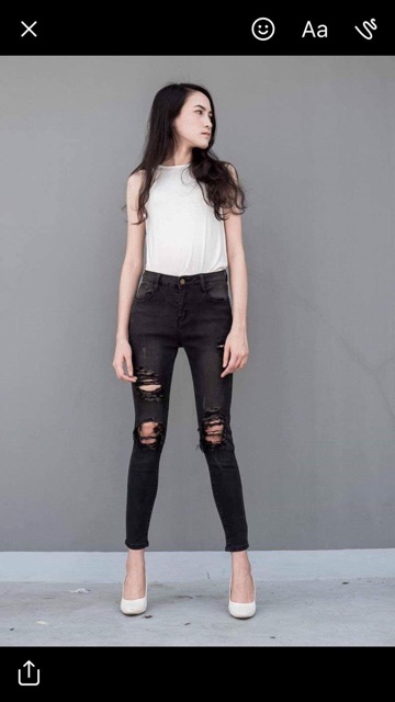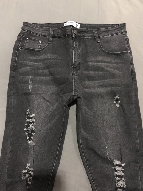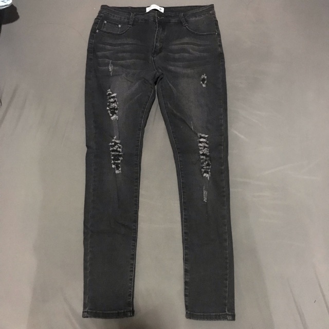 กางเกงยีนส์แต่งขาด ไซส์3XL สีดำ