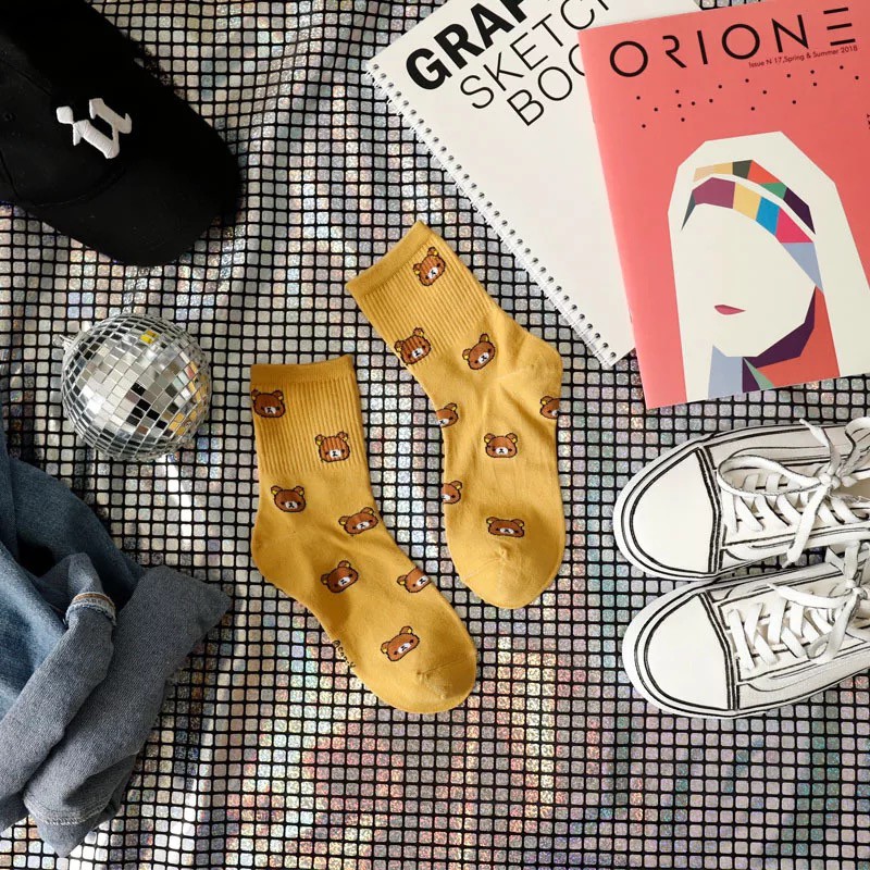 🔥ถุงเท้า🔥 ถุงเท้าข้อกลาง ลายการ์ตูน ลายหมี คุณภาพดี NO.41