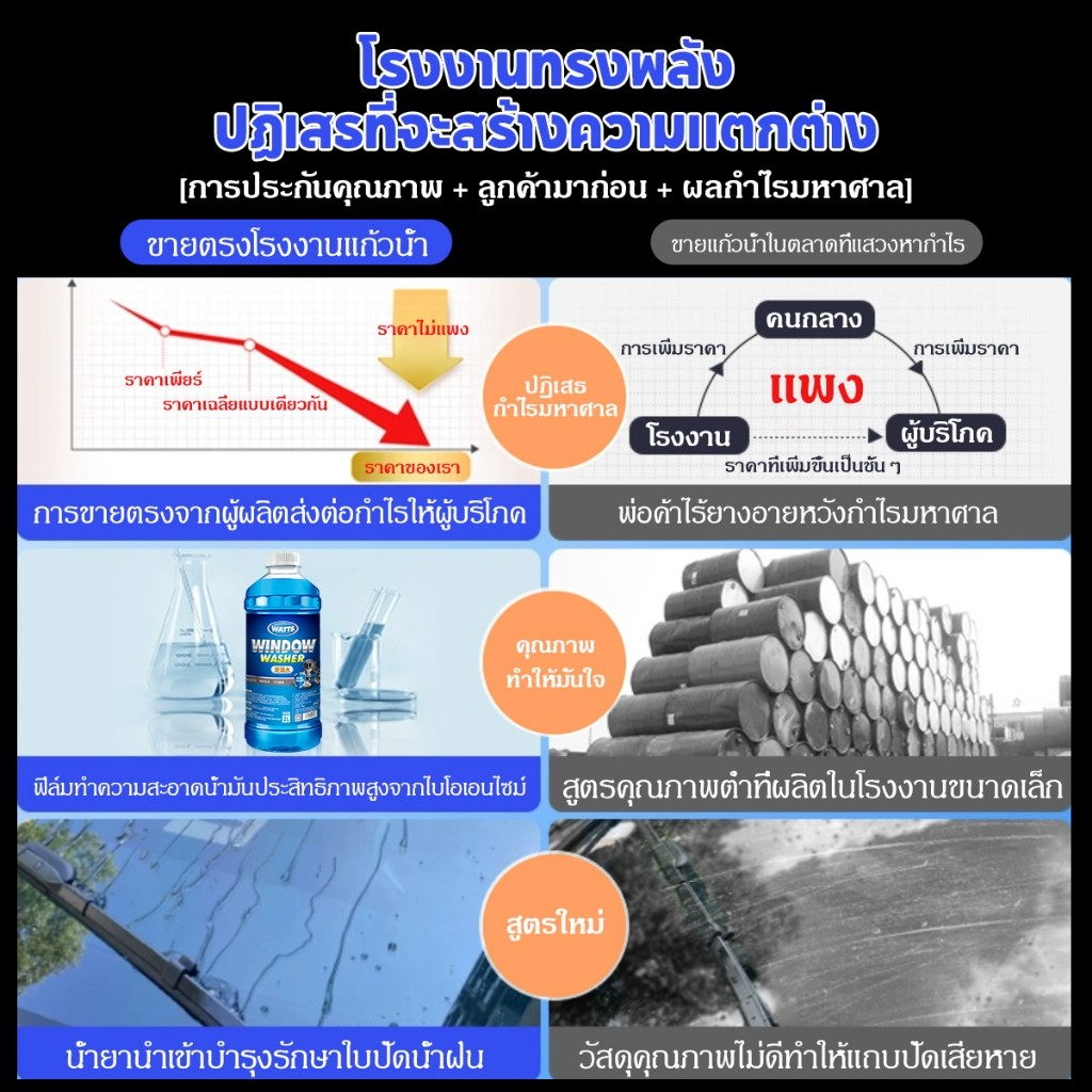 WATTSน้ำยาล้างกระจก น้ำยาทำความสะอาดกระจกรถยนต์ แบรนด์ น้ ำยาทำความสะอาด ขจัดคราบสกปรก มินติดฟิล์ม คราบแมลง มูลนก