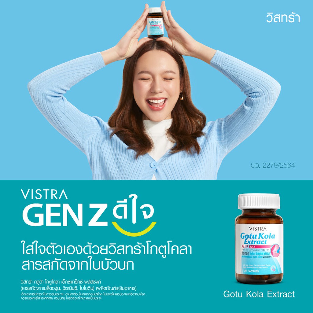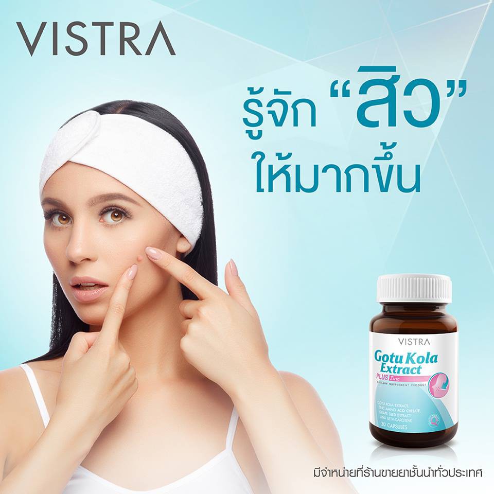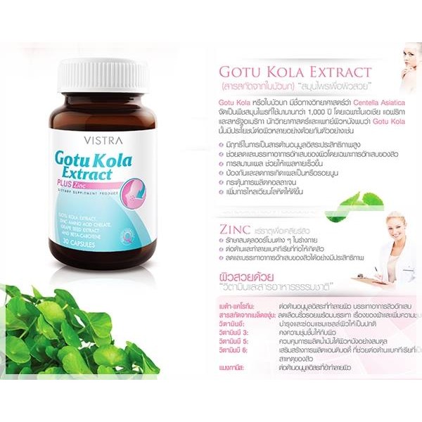 Exp 12/27 Vistra Gotu Kola Extract Plus Zinc 30 แคปซูล วิสตร้า สิวอักเสบ ลดสิว สิวอุดตัน แผลเป็น รอยนูน