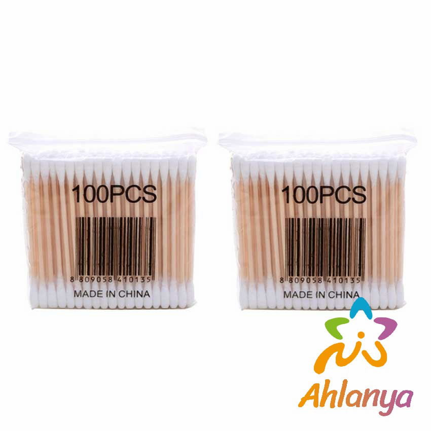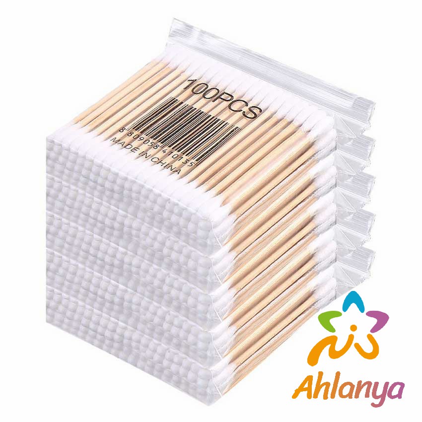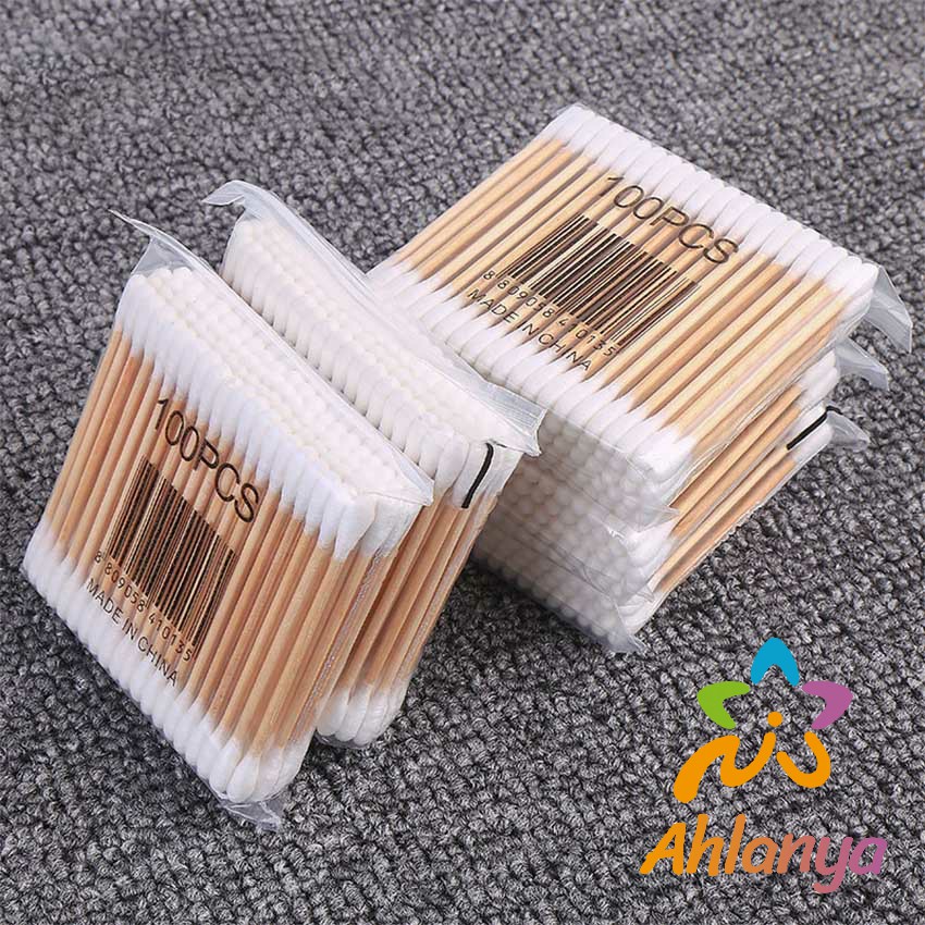 Ahlanya สำลีก้านด้ามไม้ หัวคู่คัตเติ้ลบัต สำลีแบบไม้ 1 แพ็ค บรรจุ 80 ก้าน Cotton swab
