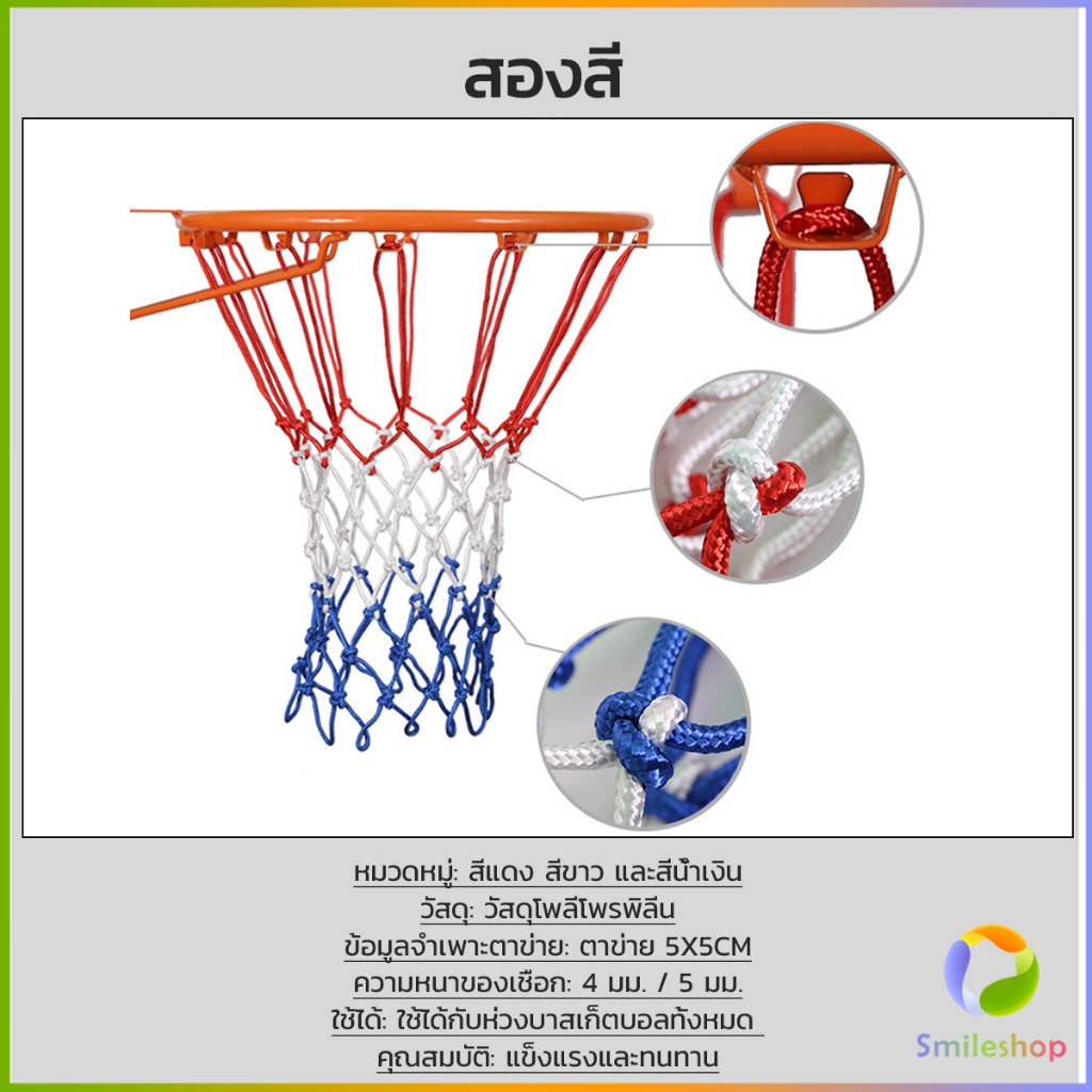 Smileshop ตาข่ายห่วงบาส ตาข่ายไนล่อน อย่างดี เชือกร่ม 4mm/5mm Basketball rack net