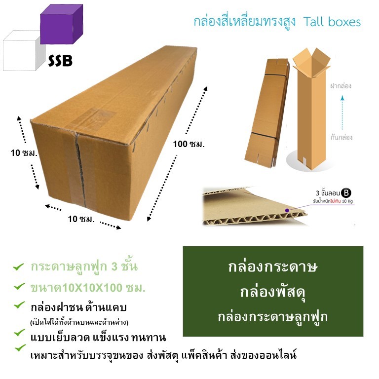 🔥พร้อมส่ง🔥 กล่องกระดาษ 10x10x100 ซม. กล่องลูกฟูก 3 ชั้น ทรงยาว ทรงสูง ทรงแคบ กล่องฝาชน แข็งแรง ทนทาน