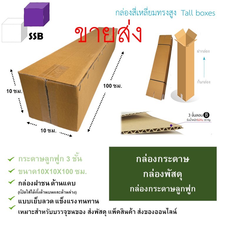 🔥Promotion🔥 กล่องกระดาษ 10-10-100 ซม. กล่องลูกฟูก 3 ชั้น ทรงยาว