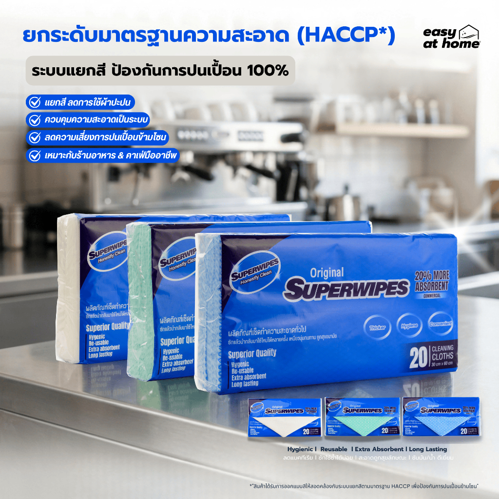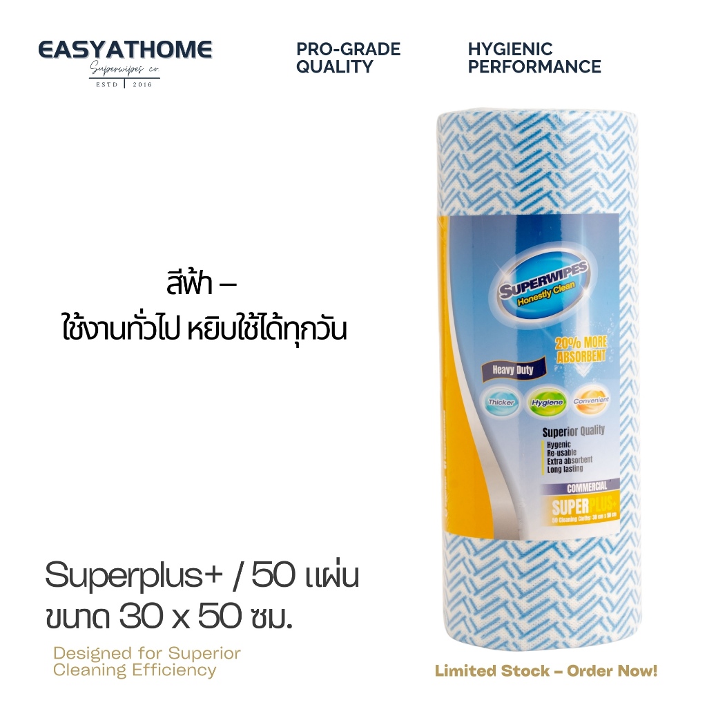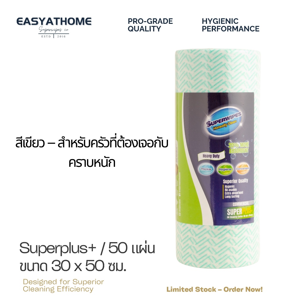 Superwipes ผ้าเช็ดอเนกประสงค์ หนานุ่ม 50 แผ่น – สูตรออสเตรเลีย สำหรับร้านอาหาร/ครัว | Easyathome