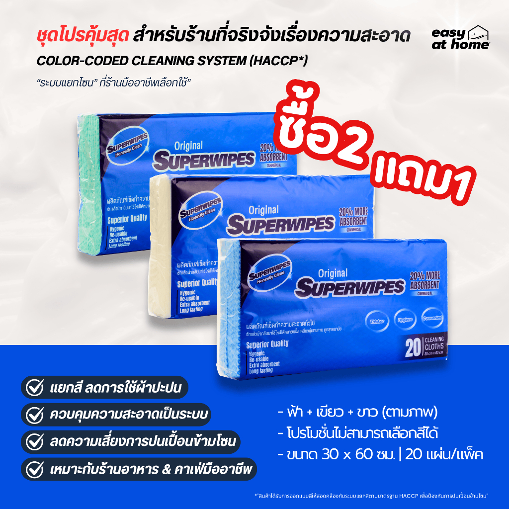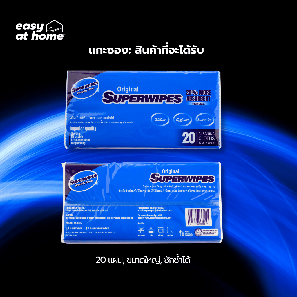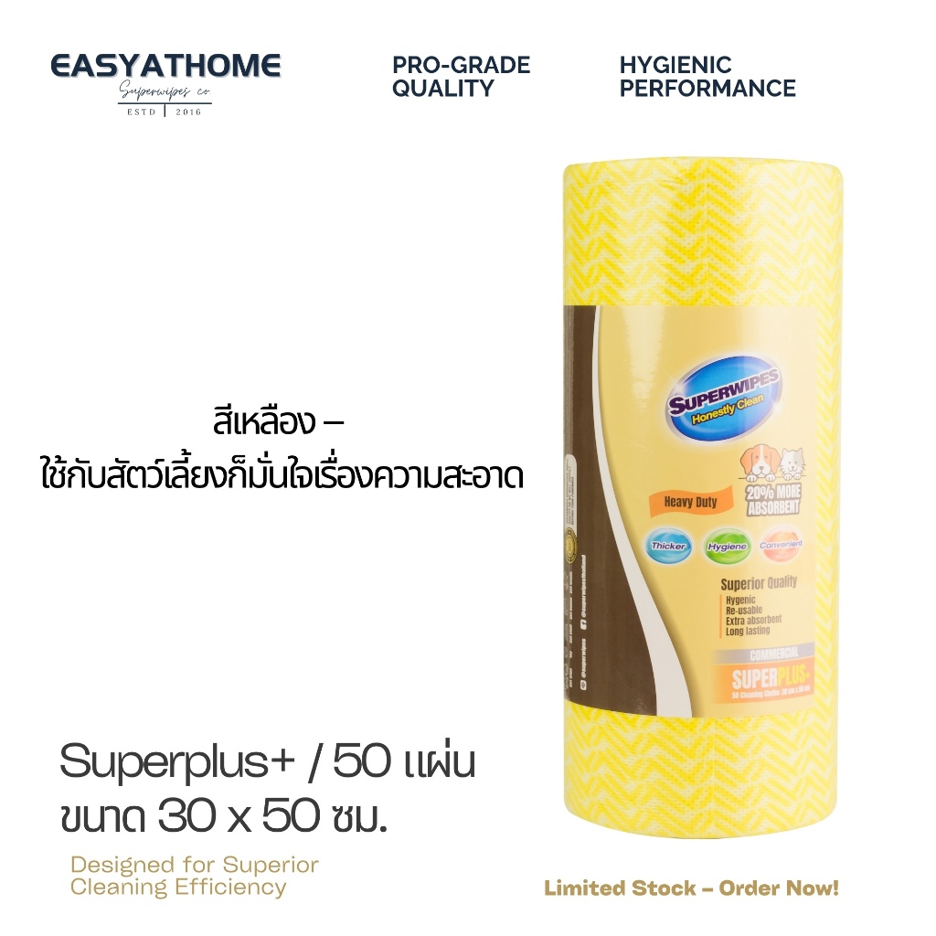 Superwipes ผ้าเช็ดอเนกประสงค์ หนานุ่ม 50 แผ่น – สูตรออสเตรเลีย สำหรับร้านอาหาร/ครัว | Easyathome