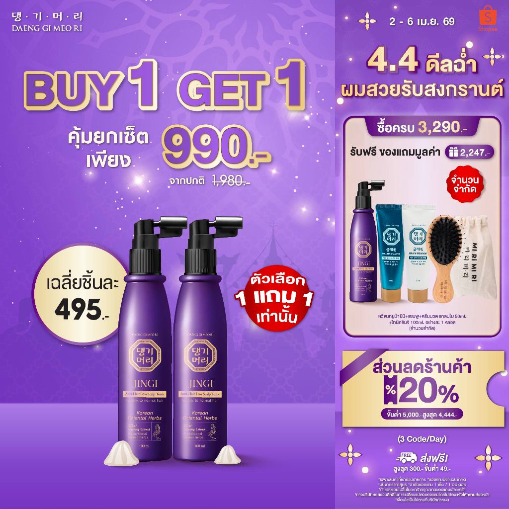 [1แถม1] DAENG GI MEO RI JINGI Anti-Hair Loss Scalp Hair Tonic จินจิ แอนตี้ แฮร์ ลอส สคัลพ์ แฮร์ โทนิค เซ รั่มลดผมร่วง