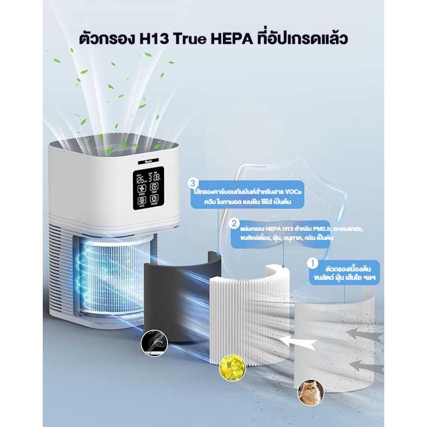 【กำจัด PM2.5】HEPA Air Purifier 1200ft²/ชม. เครื่องฟอกอากาศ กำจัดฟอร์มาลดีไฮด์ ประกัน 1 ปี