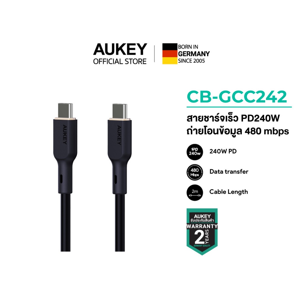 [สำหรับ Samsung S25] AUKEY CB-GCC241/CB-GCC242 สายชาร์จเร็ว 240W 5A Silicone USB-C to USB-C PD3.1