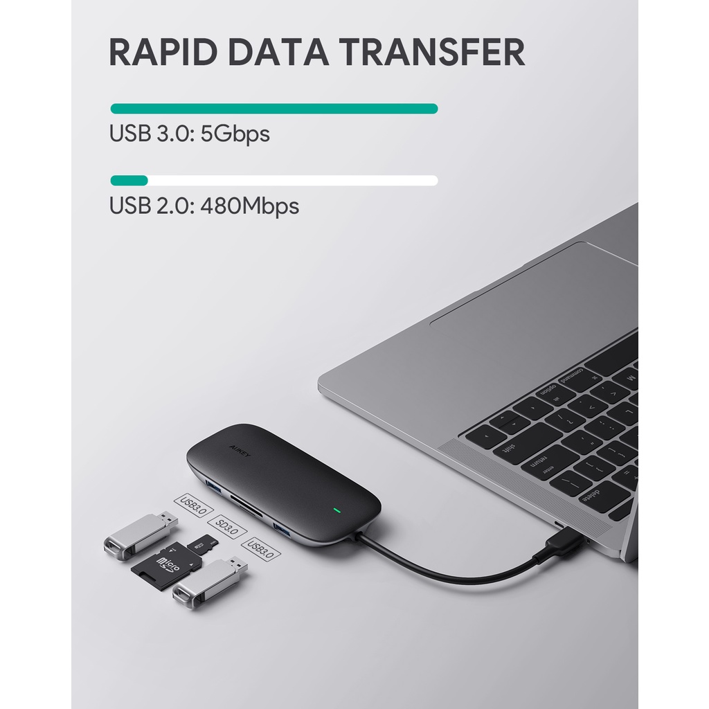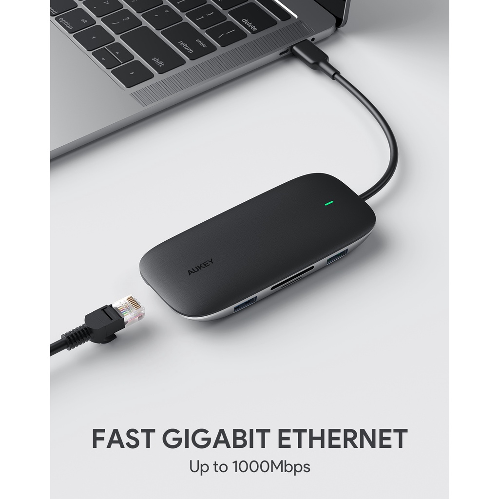 AUKEY CB-C71 ฮับ ยูเอสบี 8 in 1 USB C Hub with Ethernet Port, 4K USB C to HDMI Black รุ่น CB-C71