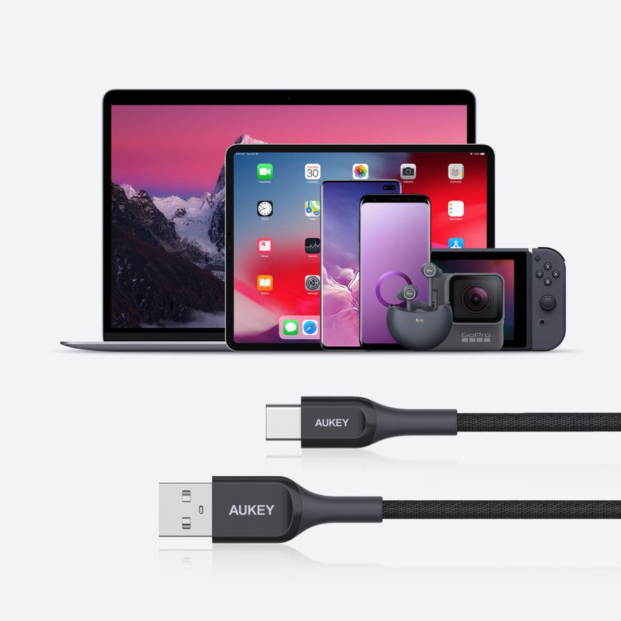 AUKEY CB-AKC Series | สายชาร์จ Kevlar USB-A to USB-C ชาร์จเร็ว QC 3.0 3A / Data 480Mbps
