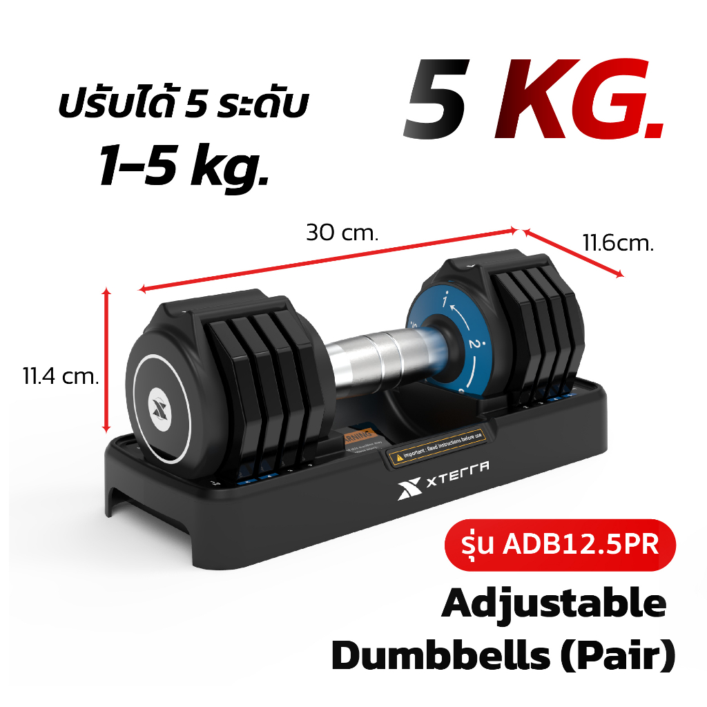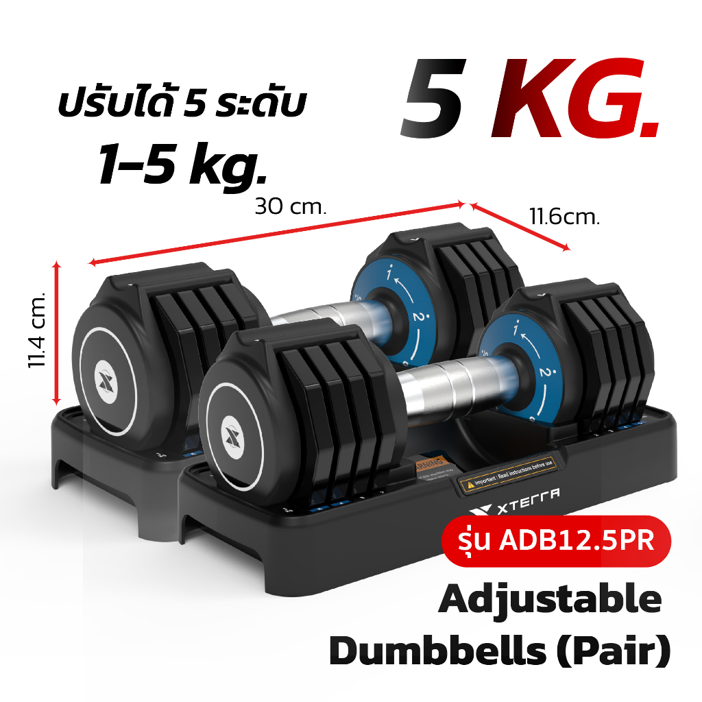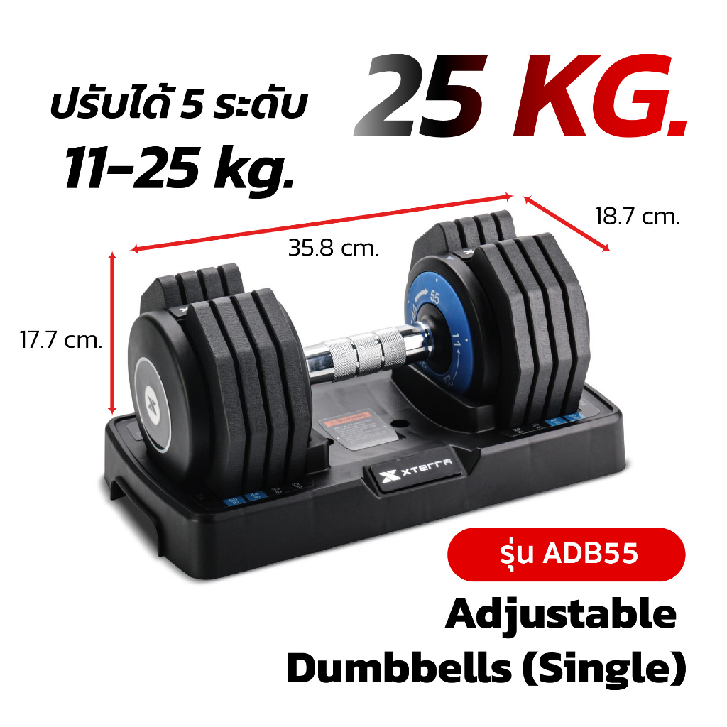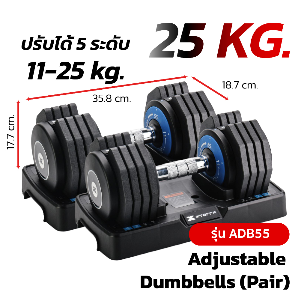 XTERRA ชุดดัมเบล ปรับน้ำหนักได้ ขนาด 5kg 10kg 25kg เซตคู่ พร้อมแท่นวาง ยกน้ำหนัก สร้างกล้ามเนื้อAdjustable Dumbbell