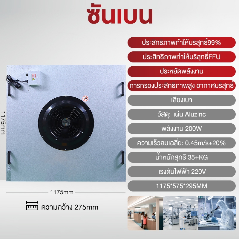 เครื่องฟอกอากาศ FFU สำหรับโรงงานอุตสาหกรรม อัตราการฆ่าเชื้อ 99.99% ดับกลิ่น ชั้นผงอุตสาหกรรม ฟอกอากาศ กำจัดกลิ่นและลดเชื