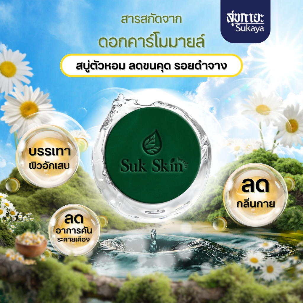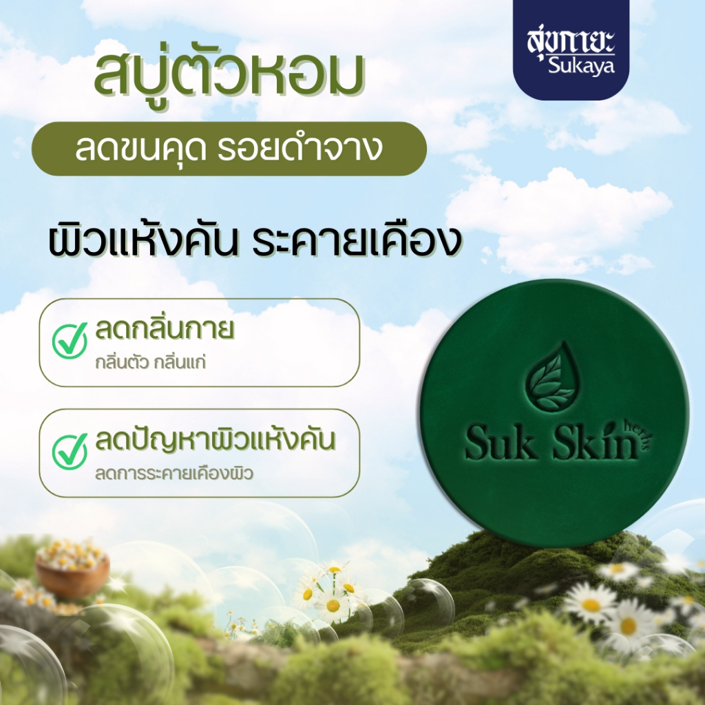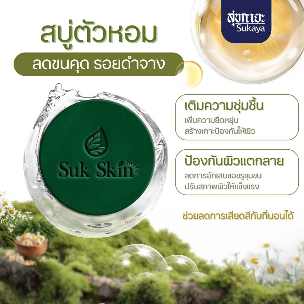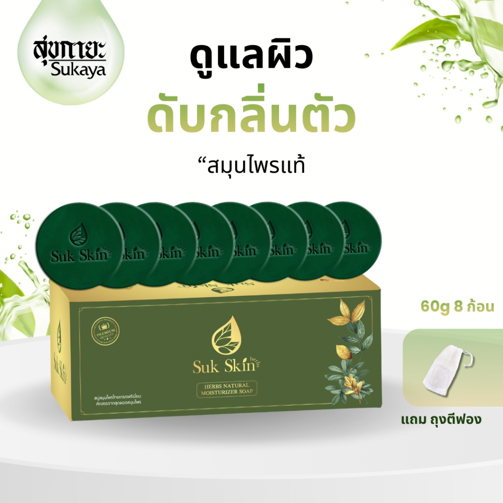 (แพค 60กรัม 8ก้อน แถมถุงตีฟอง 1) Suk Skin Herbs สบู่สมุนไพรสุขสกินเฮิร์บซ์ สบู่สูตรเย็น สบู่ดับกลิ่นกาย ดับกลิ่นแก่ สบู่
