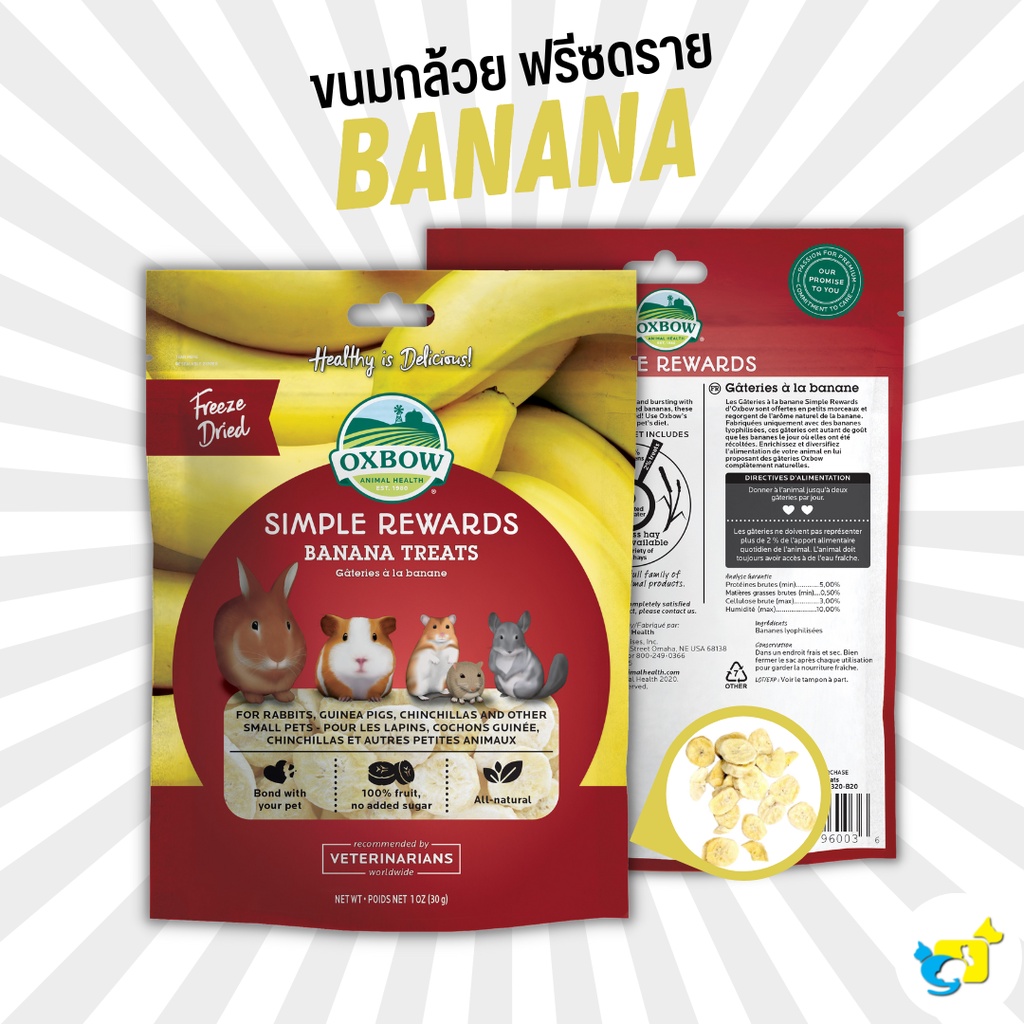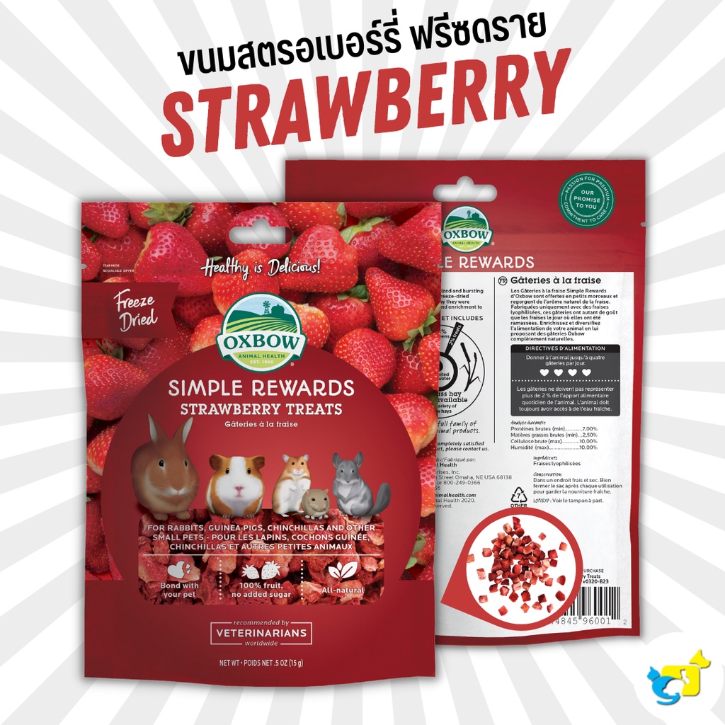 Oxbow Treat ผลไม้อบเเห้ง (Freeze Dried) ขนมจากหญ้าทิโมธี ขนมกระต่าย แกสบี้ ชินชิลล่า ชูก้าไรเดอร์