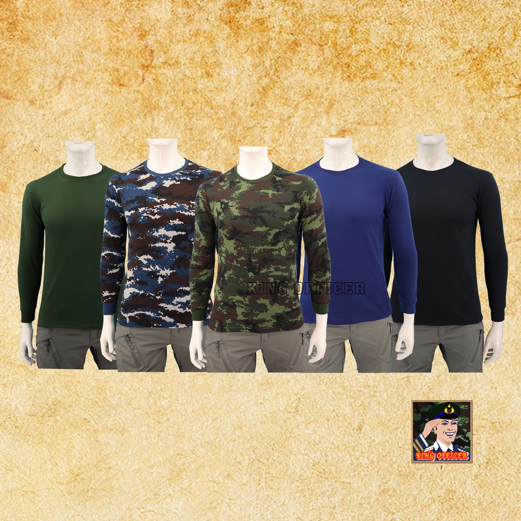 เสื้อยืดทหารแขนยาว คอกลม เกรดพรีเมี่ยม สีกรมท่า ดำ เขียวขี้ม้า ทหารอากาศ ทหารบก ผ้าหนา เสื้อยืดแฟชั่นลายพราง